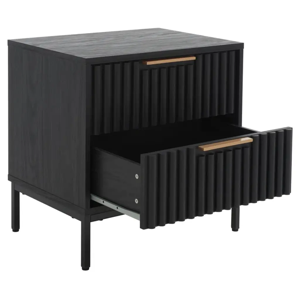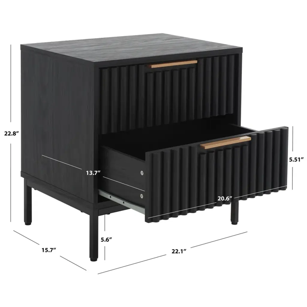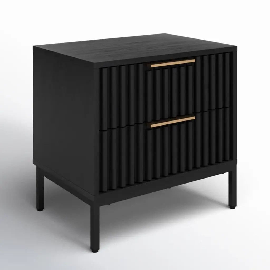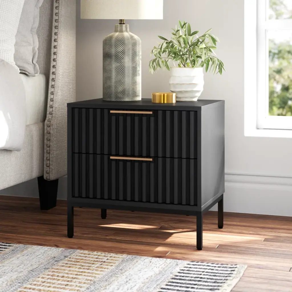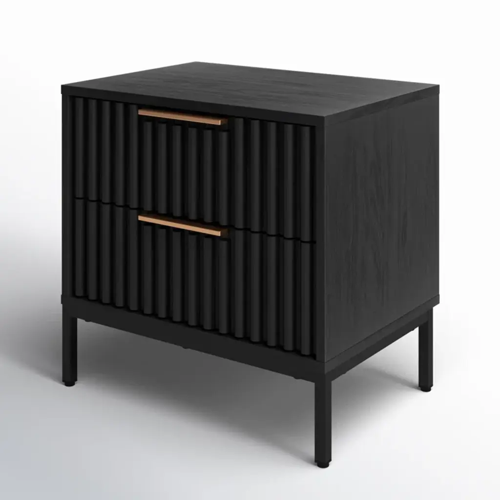 A clean-lined nightstand like this one takes a unique vintage style and makes it effortlessly mod. It rests on straight metal corner legs, while the rest is engineered wood in a muted tone. The two drawer fronts feature fluted details and metal hardware, making it easy to tuck away all your bedtime essentials. Measuring 22.1" wide, this bedside table fits neatly next to your bed or living room sofa.