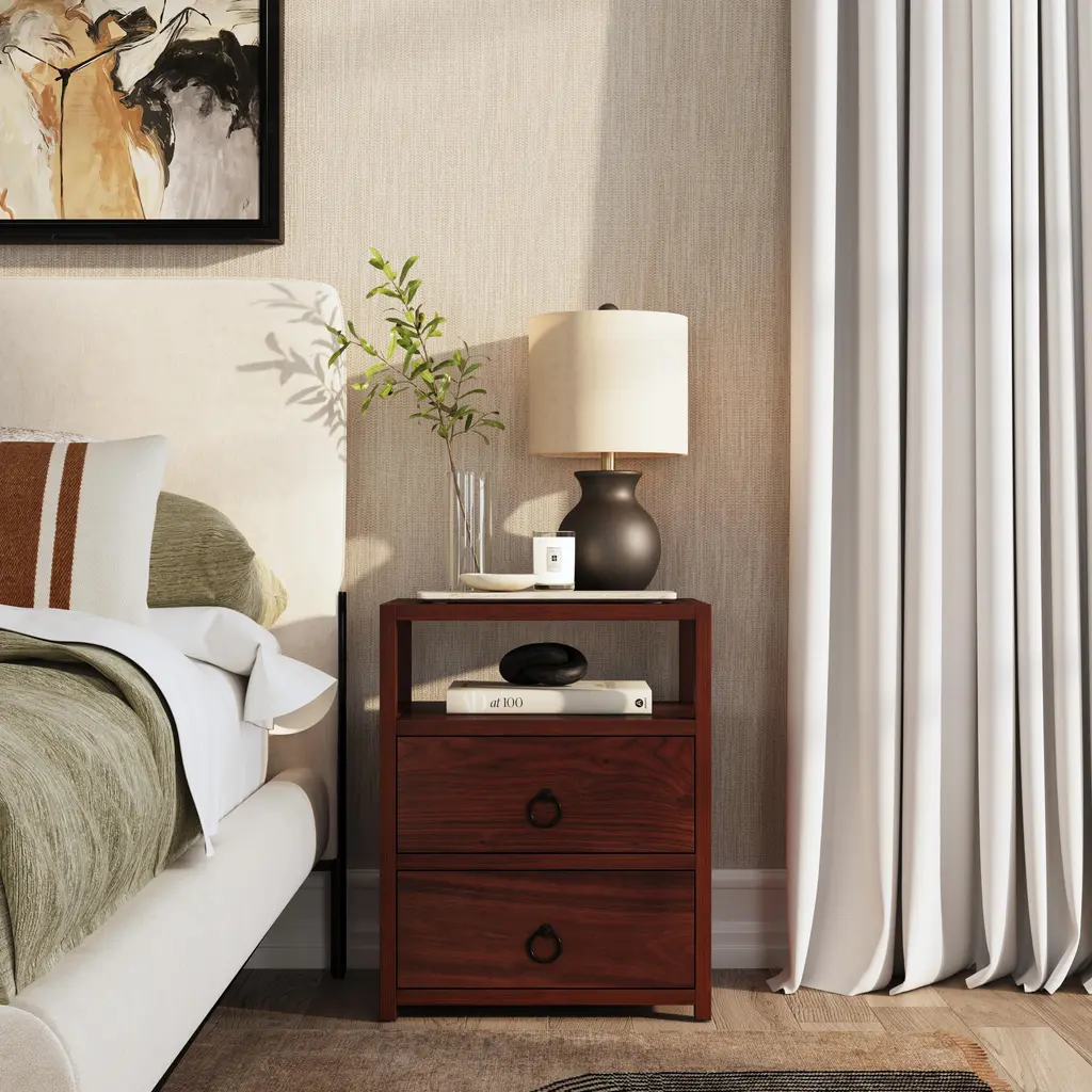 Butler Specialty Company Lark 21 in. W Wood 2 Drawer Nightstand with Open Storage Shelf, Medium Brown