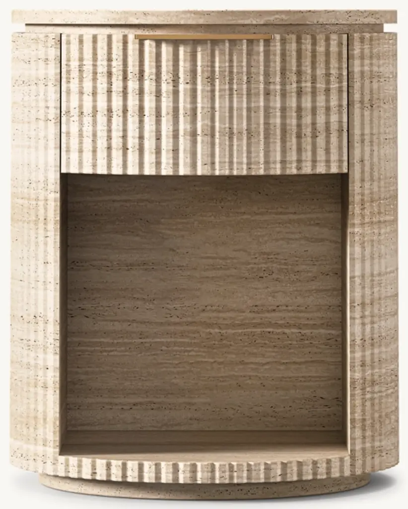 Designed by Harrison and Nicholas Condos of Sydney, Australia, Byron is handcrafted of Italian travertine or Spanish marble, its vertical surfaces carved with fine reeding. The contemporary silhouette appears almost fluid in nature, seeming to float on a recessed plinth base.SHOP THE ENTIRE COLLECTIONEXPLORE ALL REEDED COLLECTIONS