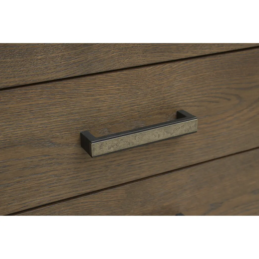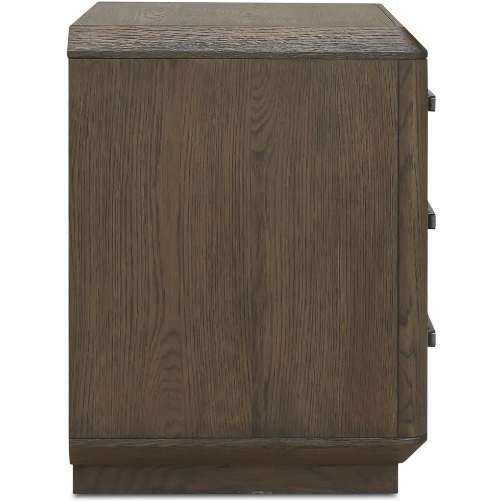 Crafted from solid oak with a distressed brown finish, the Caleb nightstand harmonizes strength with weathered sophistication. Clean lines and balanced proportions create a sense of tranquility, while the subtle rustic air complements various interior styles. Three spacious drawers offer ample storage, a testament to well-considered, well-crafted design.
