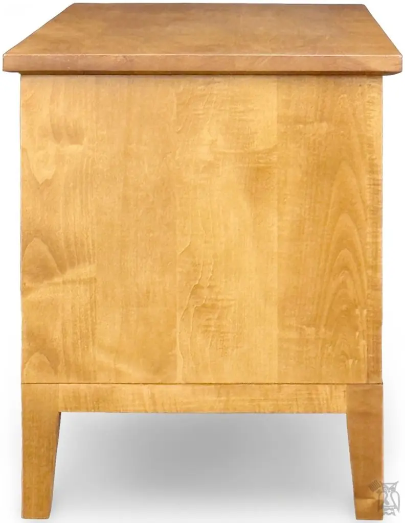 California Made Solid Maple Wood Alta Lift-top Blanket Chest in Cashew Finish. This item is stocked in maple wood with Cashew finish or special order color. Features lift top with safety hinges and genuine solid cedar wood lining. The Alta collection features solid wood construction, a reversed bevel top, raised tapered legs, and beveled drawer fronts. Drawer boxes feature solid beech wood with English dovetail construction with soft-close, self-closing drawer glides. You can order this piece your way! When you order a piece of Stuart David furniture, you choose the look and the pieces: Choose wood: premium oak, premium quartersawn oak, knotty oak, maple, beech, premium cherry, knotty cherry, knotty alder, knotty hickory, or walnut. Choose color: There are over 60 different finish and paint options including distressing and antiquing. Pair this piece with your choice of beds, dressers, chests, nightstands and more. Custom sizes available. Download the Stuart David product brochure in the Resources tab or visit our showroom for all of your options. Price will vary depending on the wood and finish choice. Custom sizes and modifications are available. Made in Northern California. Fully assembled. No Particle Board. Manufacturer: Stuart David.