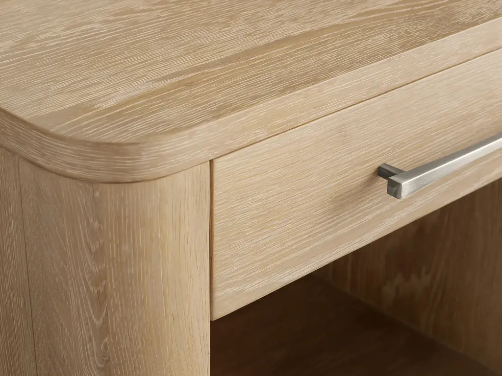 Featuring clean lines and subtle curves, our Calista Bedroom Collection is all about the small details. Crafted with veneered oak, simplistic case pieces are equipped with spacious drawers accented by beautiful pulls.