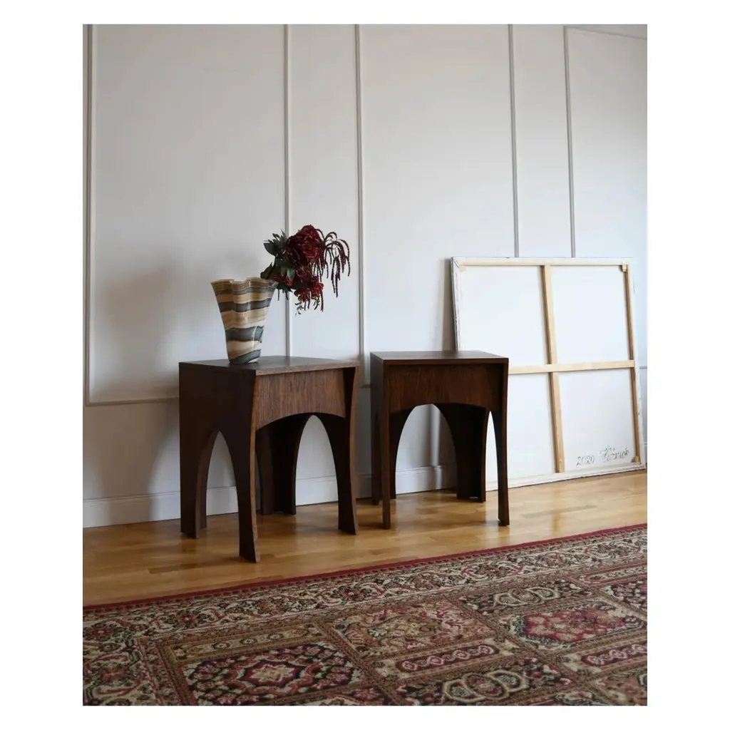 Capricorn Bedstand by PastformDimensions: D 45 x W 45 x H 60 cm.Materials: Stained and varnished wood.Available in different wood color finishes: Whiskey, Rum, BPA, Nobel, Brandy, Schwarz, and Natura. Please contact us.Rooted in a good traditionThe Pastform Furniture studio dates back to the 1990s. Having in mind the idea of a traditional family company, Dawid Gełeta established a carpenter’s shop in 1997. The company specializes in the manual production of utility furniture. Times have changed and with them, fashion has changed. In 2016 we decided to change the direction, following the growing demand for vintage furniture.My name is Mateusz Gełeta, I am the son of the carpenter who founded the company. From an early age, I have watched my dad’s work. He put his whole heart into creating furniture, polishing every detail with his strong hands and making sure that nothing escaped our attention before sending the product to the customer. He made sure that every piece of furniture was perfect and refined. We remain true to these principles.Following the blow, I decided to create a harmonious combination of modern quality with the classic style of the 1960s. This is why I designed and created a unique collection of wonderful furniture, which, in addition to its well-thought-out functionality, also creates a perfect design and composes original arrangements.The golden age of interior designIn the 1960s interiors used to take on a very characteristic touch. All over the world, this style was called a mid-century modern, locally it was simply – retro furniture. Simple, elegant minimalistic form, without unnecessary decorations and splendor. Decorating with the idea of an uncomplicated composition, it allows for an undisturbed selection of the arrangement accessories and emphasizes a high level of functional comfort. One might say – a perfect piece of furniture. Comfortable, hiding surprisingly many items despite quite neat dimensions, made of noble species of wood and created by hand, with a focus on carefully refined details. No wonder its popularity is growing so much.Unique, refined, with a soulEach piece of the Pastform collection represents a unique style. Thoughtful concept of usable comfort, refined details, carefully selected raw materials, and proven accessories. We use only high-quality boards which we veneer with oak, American walnut, and other durable wood species. They are carefully oiled with the best, hard, ecological oil waxes, giving the furniture its final shape. This technology brings out the natural beauty of wood, exposes the grain and unique design of each piece, highlights the beautiful color, and allows to achieve timeless durability.This is how unique, thoughtful, and refined furniture with a soul is created.Thinking about futureWe are trying to positively create the world of which we are a part, contributing to a better tomorrow. We cooperate with local suppliers, support small companies and production plants, care for ecology, and respect the needs of the land. We always strive to establish long-lasting, based-on-trust relationships with customers and contractors.Flexible, with openness and heart on handWe sincerely like what we do. Playing with the shape, structure, and texture of wood is fascinating. Creating new arrangements and coming up with innovations that will meet your expectations. We are proud of our products and we are happy to present you with our collection of refined furniture.All our vintage furniture can be made on request – fulfilling the boldest dreams and fantasies. See our offer and if you want to know more, feel free to contact us. We are waiting for you!