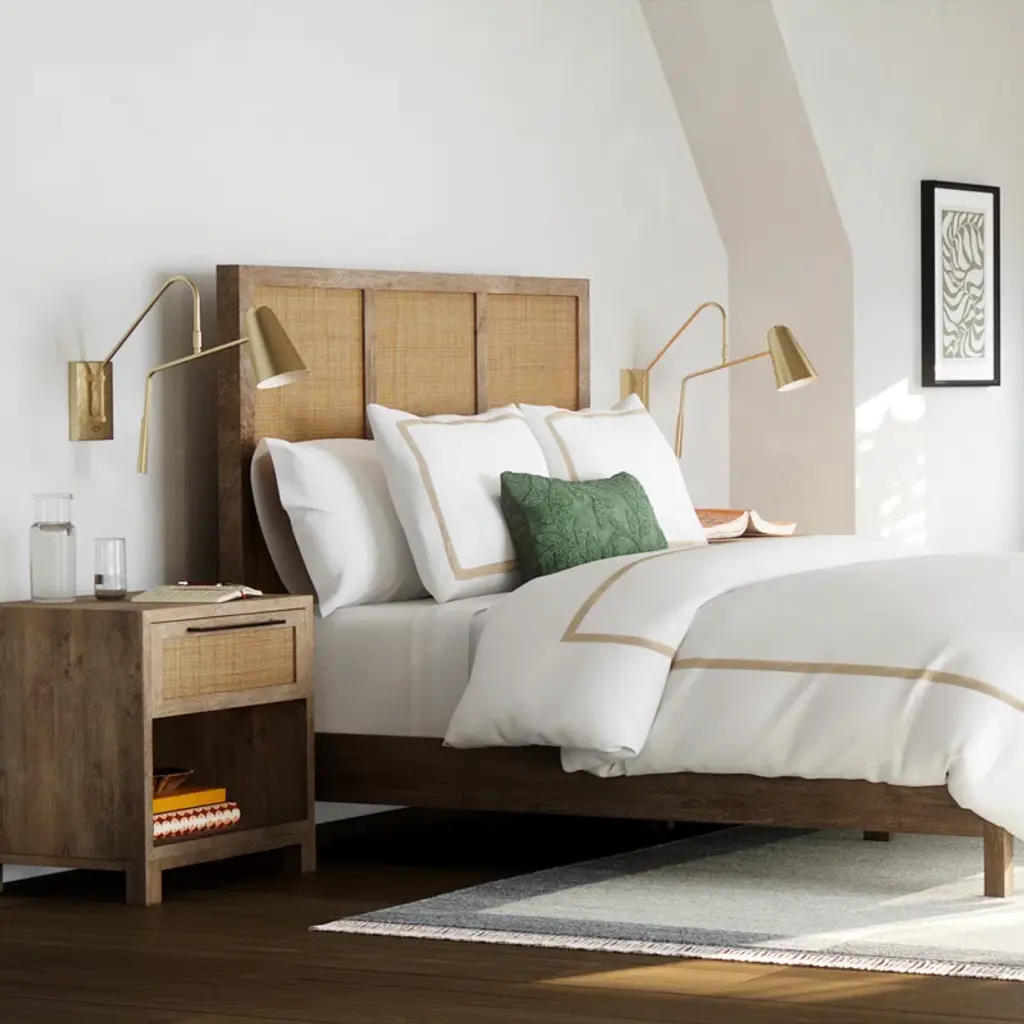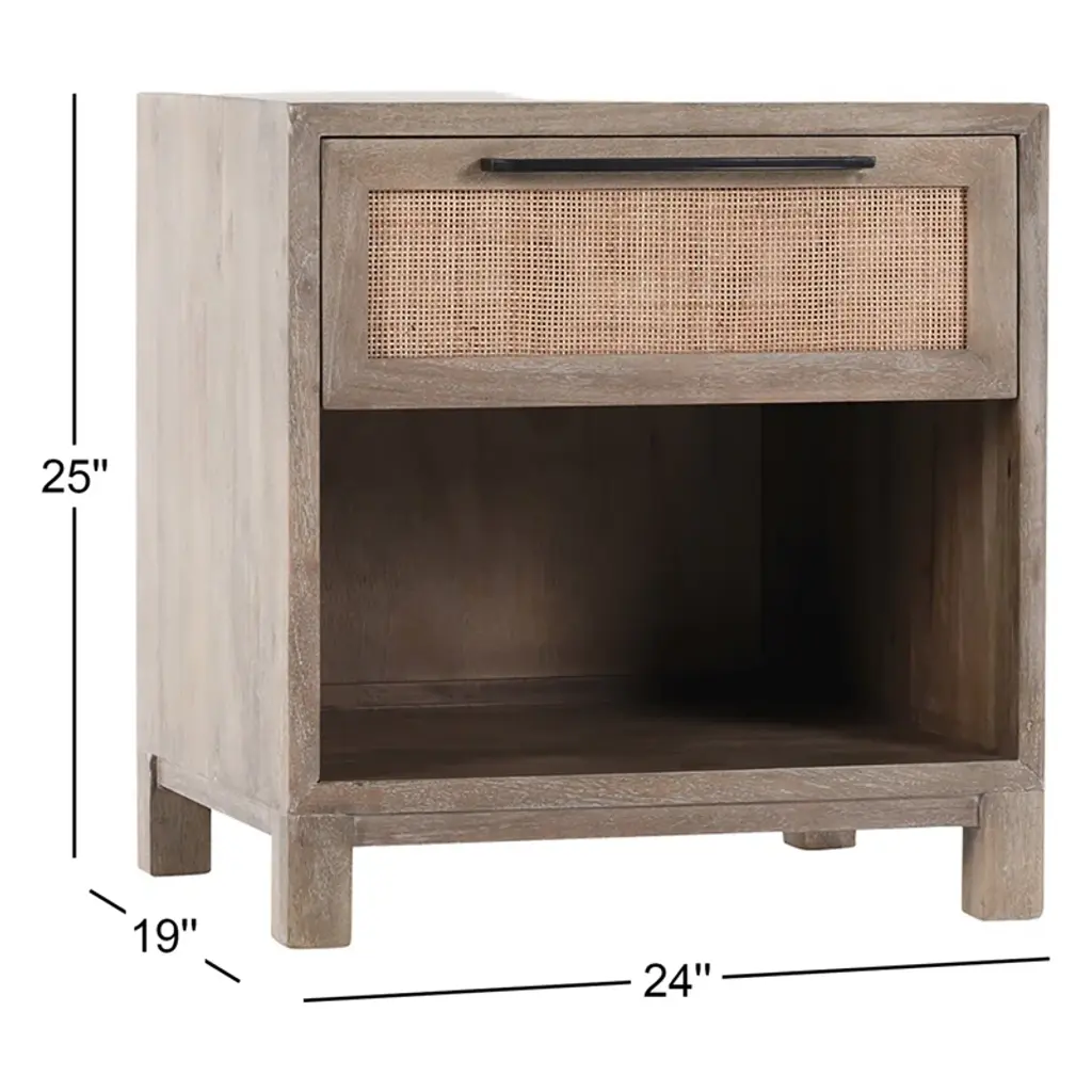 This nightstand delivers classic good looks and plenty of storage to your bed side. It has a single, cane-front drawer for your nighttime essentials and an open shelf for your stack of must-reads. Top with a reading lamp and fall into a new evening routine. Consider a pair for either side of your bed for a cohesive look.