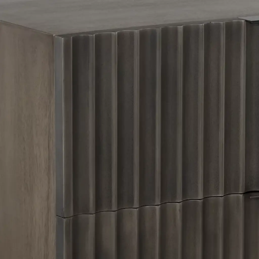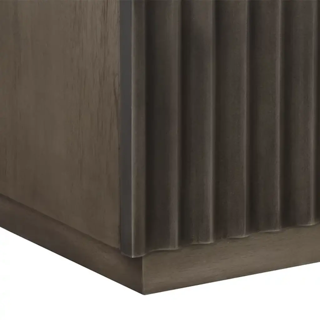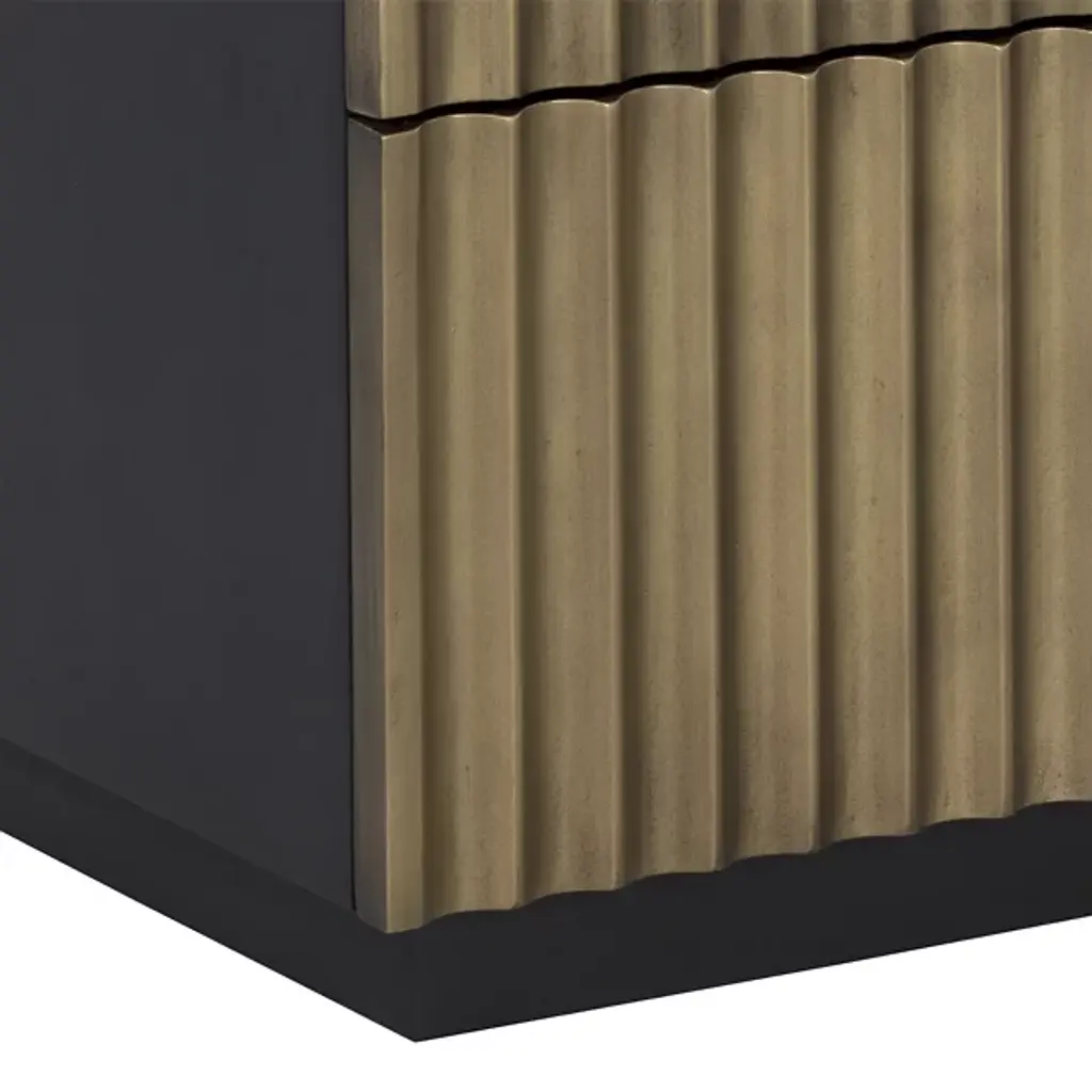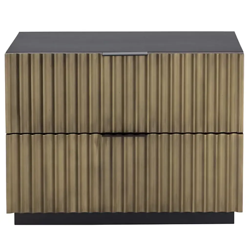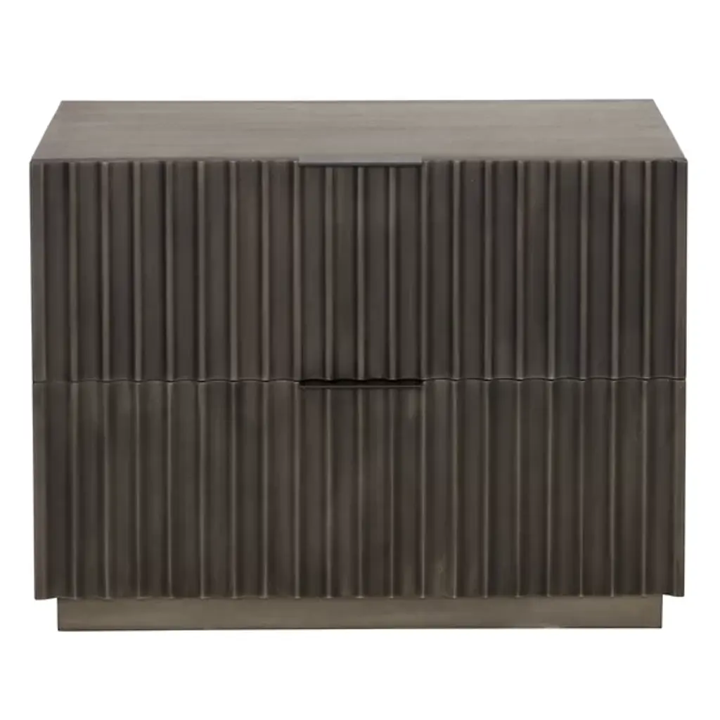 The Carlin Nightstand from Sunpan is designed to command attention in any bedroom. Crafted from black mango wood, it features dramatic sculpted details on the two drawer fronts, complemented by sleek black powder-coated aluminum handles for a modern finish. The organic nature of the wood ensures that each piece is unique, with natural variations in texture, color, and grain, along with charming knots and burls. Expertly made in India by skilled artisans, this nightstand embodies refined craftsmanship and one-of-a-kind character.