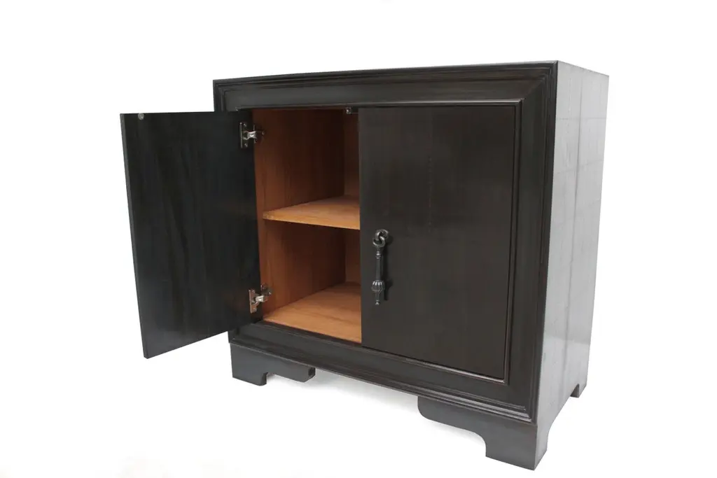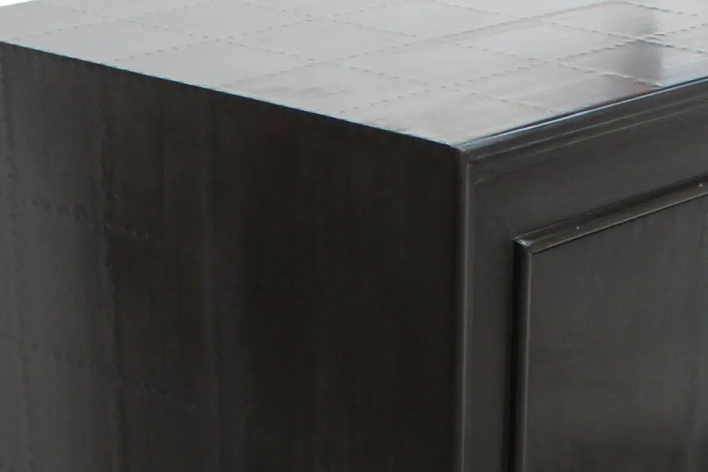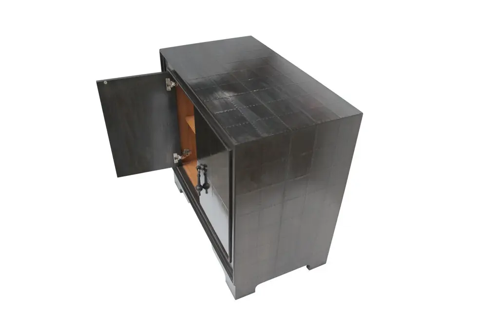 Available sizes:36" x 20" x 34" H Inspired by the classic coffered, hand-tooled metal-clad furniture of the opulent Mughal period. This elegant furniture is hand made from solid pieces of teak that are joined into a repeating pattern of panels enclosed by raised moldings. Pattern makers then trace and cut the complex forms that will cover the workpiece with thick sheets of white bronze. The metal sheets are then hand-hammered and embossed with intricate tradition raised decoration before being attached and covering the entire outside surface of the piece. The available options for metal cladding are brass, white bronze, antiqued bronze, silver and copper. Both silver and copper will tarnish over time. Regular non-abrasive household metal polishes can be used to restore the original finish. Please note that moisture in air, sudden change in temperature and natural movement of wood over time causes the metal to wrinkle or bubble up. We use well seasoned, reclaimed teak and high quality marine grade MDF (wherever technically possible) to avoid and delay the above mentioned changes. However a perfect stability of metal cannot be guaranteed. Please note that our smooth finish metal clad pieces will have some unavoidable tool marks. This is proof that everything is done by hand. The smooth finish will not come out like a machine made perfect surface and the master artisan will do their best to make it look as good/clean/stable/perfect as he possibly can. Our hammered finishes are a much safer option if the tool mark scratches are unacceptable. The hammered finishes are also safer against eventual bubbling/wrinkles due to natural forces as mentioned above. We would love to send you some samples before order confirmation so that the finish can be judged and experienced first hand.Customization is our specialty.Prices do not include shipping from India (for custom orders) or our MN warehouse (items from stock). That will be additional.