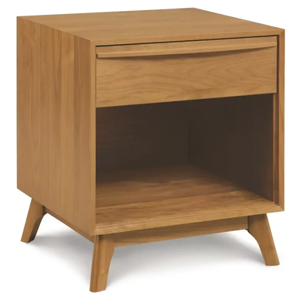 A lovely way to store and display next to the bed. The Copeland Furniture Catalina 1 Drawer Nightstand is made entirely out of solid hardwood, the lovely grain of that material drawn out with a protective low sheen top coat that is Greenguard certified.