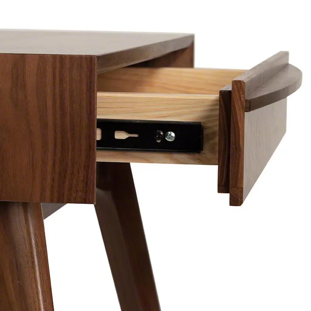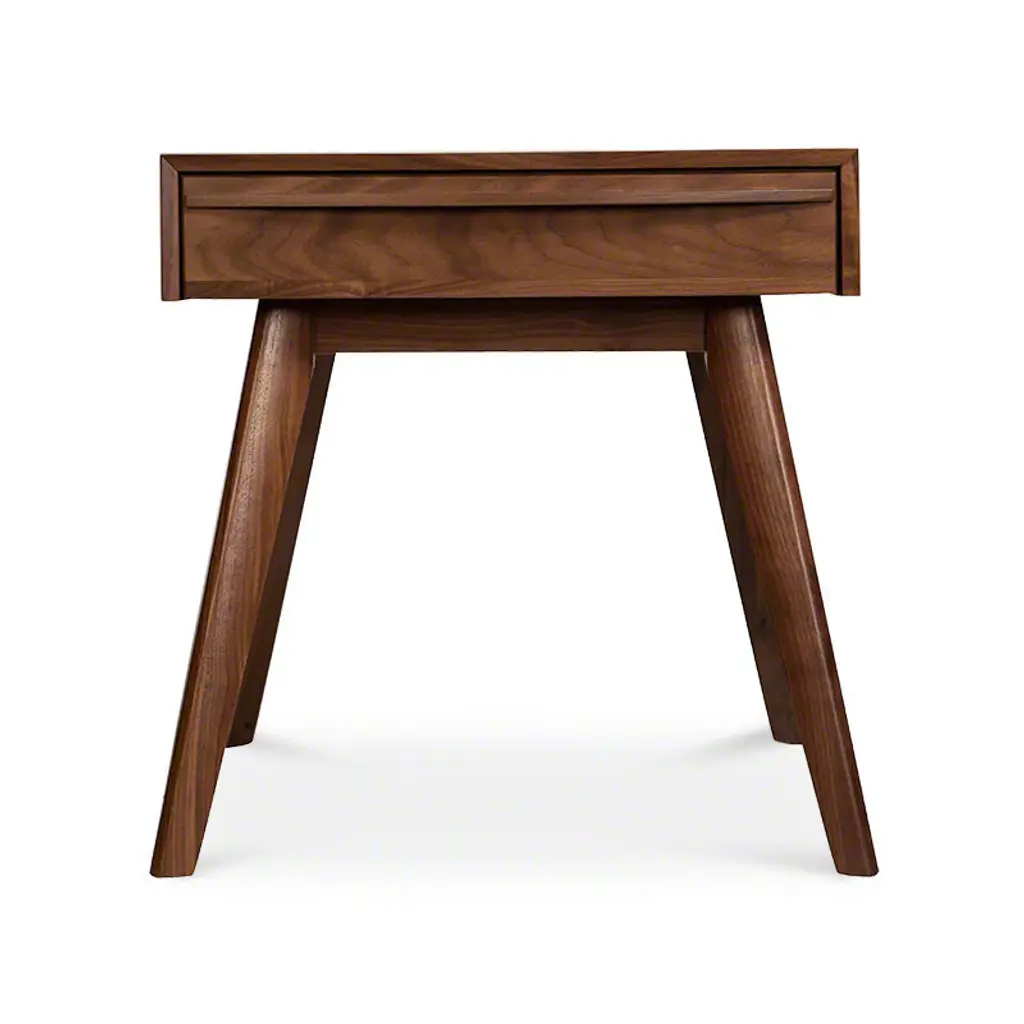Delivery Information: This furniture piece is available for pick-up from our Southern Vermont showroom or delivery throughout New England, New Jersey, New York City and select areas of eastern New York State. Our modern, solid wood Catalina Walnut 1-Drawer Nightstand features a low, sleek and clean design and is perfect for the contemporary, minimalist bedroom. Constructed of solid natural walnut wood. Our Catalina Bedroom Furniture Collection is handmade in Vermont using sustainably harvested woods. Construction details include English dovetails, fully finished drawer boxes, under-mounted, soft-close drawer slides and optional water-based formaldehyde-free finish. One (1) available in natural walnut in 20" height Finish: Lacquer Please note: Showroom items are subject to wear and tear and may show signs of use as a display model. Additional details, images and viewing options are available upon request.