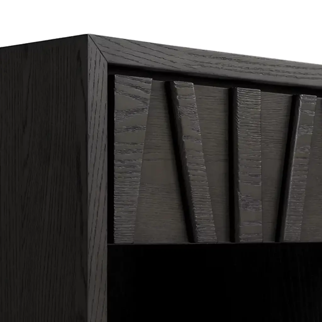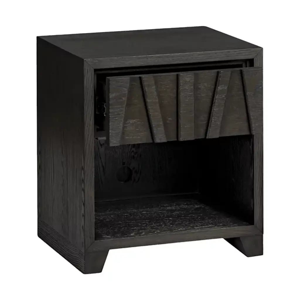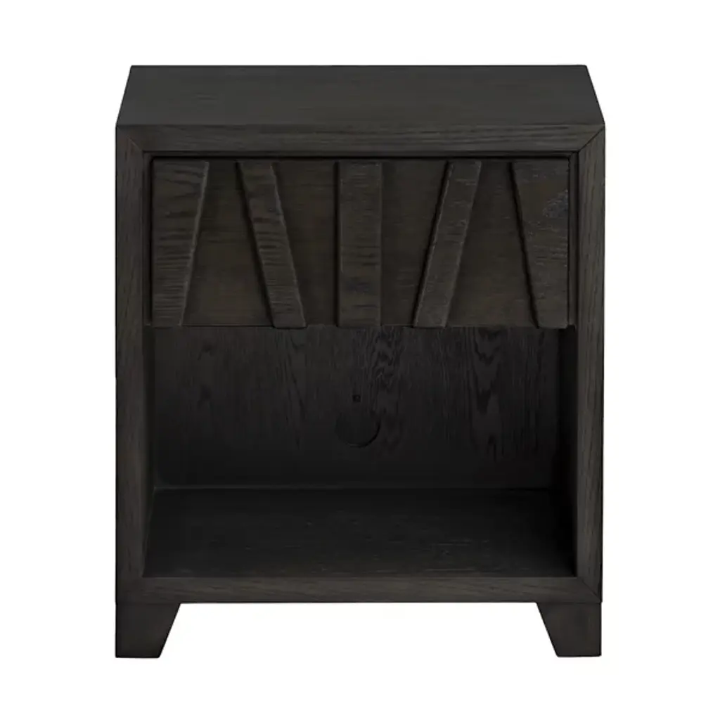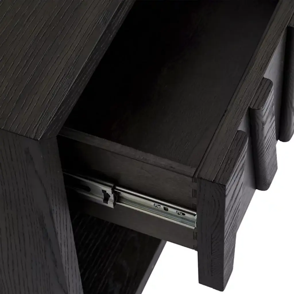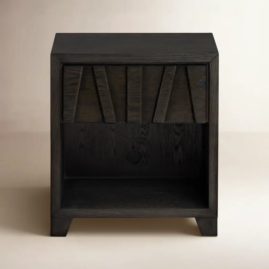 The Catalpa Nightstand from Alder & Ore is a striking bedside companion that showcases craftsmanship and design. Its solid oak construction, enhanced with oak veneers, speaks to its durability and timeless appeal, while the drawer front becomes a canvas for geometric artistry, with natural grain patterns that play with light and shadow. The addition of media cutouts and soft-close drawers also help ensure that your nightly routines are as smooth as they are aesthetically pleasing.
