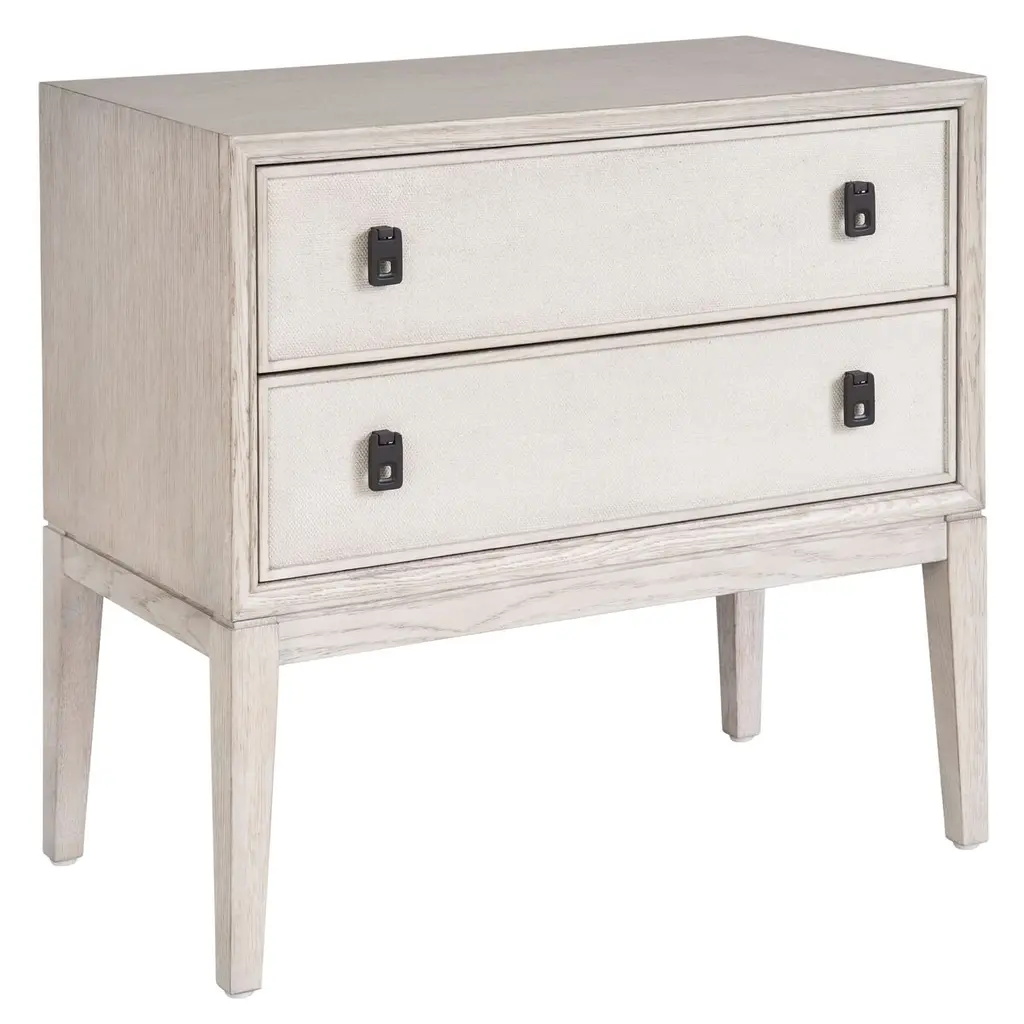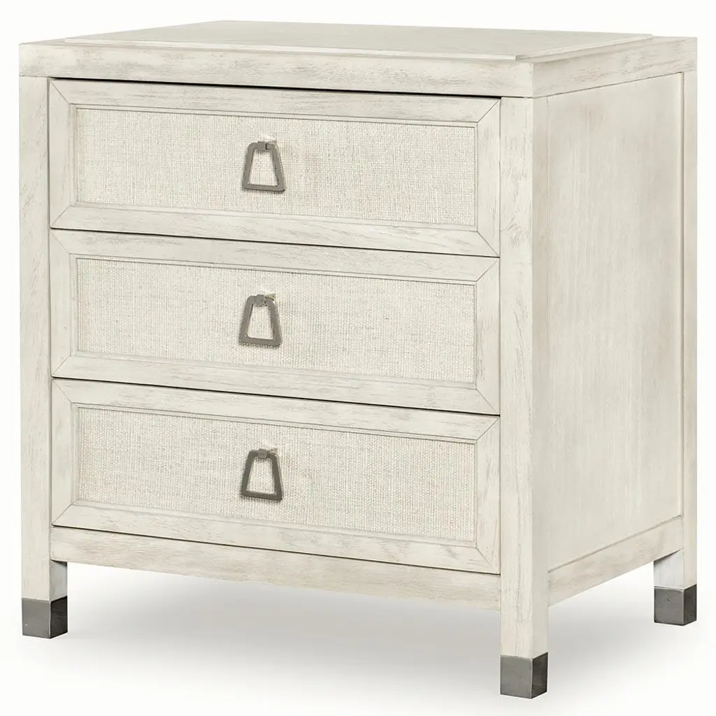 Century Atlas Coastal Beach White Wood 3 Raffia Drawer Nightstand