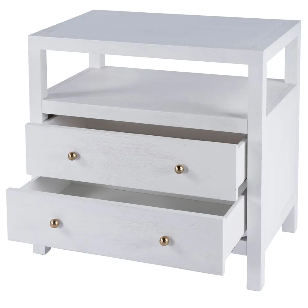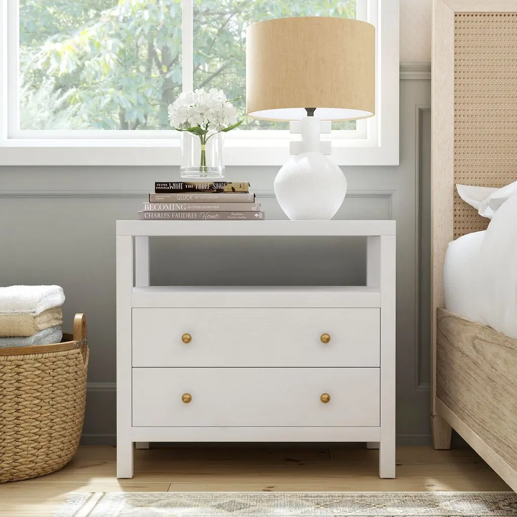 With a straightforward, clean design, and fine craftsmanship, this collection brings a traditional form to your living space. Designed with 2 lower drawers and an open shelf above, it offers thoughtful features for easy access and storage, lending a sophisticated look with its various finishes.