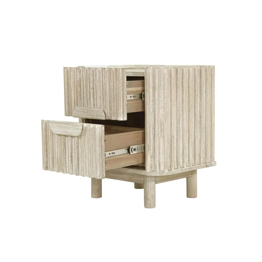 Envelop your bedroom in tranquility with the Oasis 2-Drawer Acacia Nightstand, a perfect blend of form and function. Built with a keen sense of design, this nightstand showcases solid acacia wood's durability and elegance while prioritizing your comfort and needs. The standout feature, the two drawers, provides ample storage while maintaining a sleek profile. This piece is more than a convenient bedside addition - it transforms your bedroom into a soothing personal retreat.