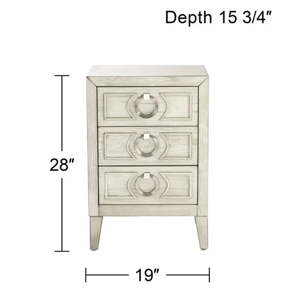 Coast To Coast Accents Reeds Farmhouse Rustic Wood Rectangular Accent Table 19" X 15 3/4" With 3-drawer White For Living Room Bedroom Bedside Entryway