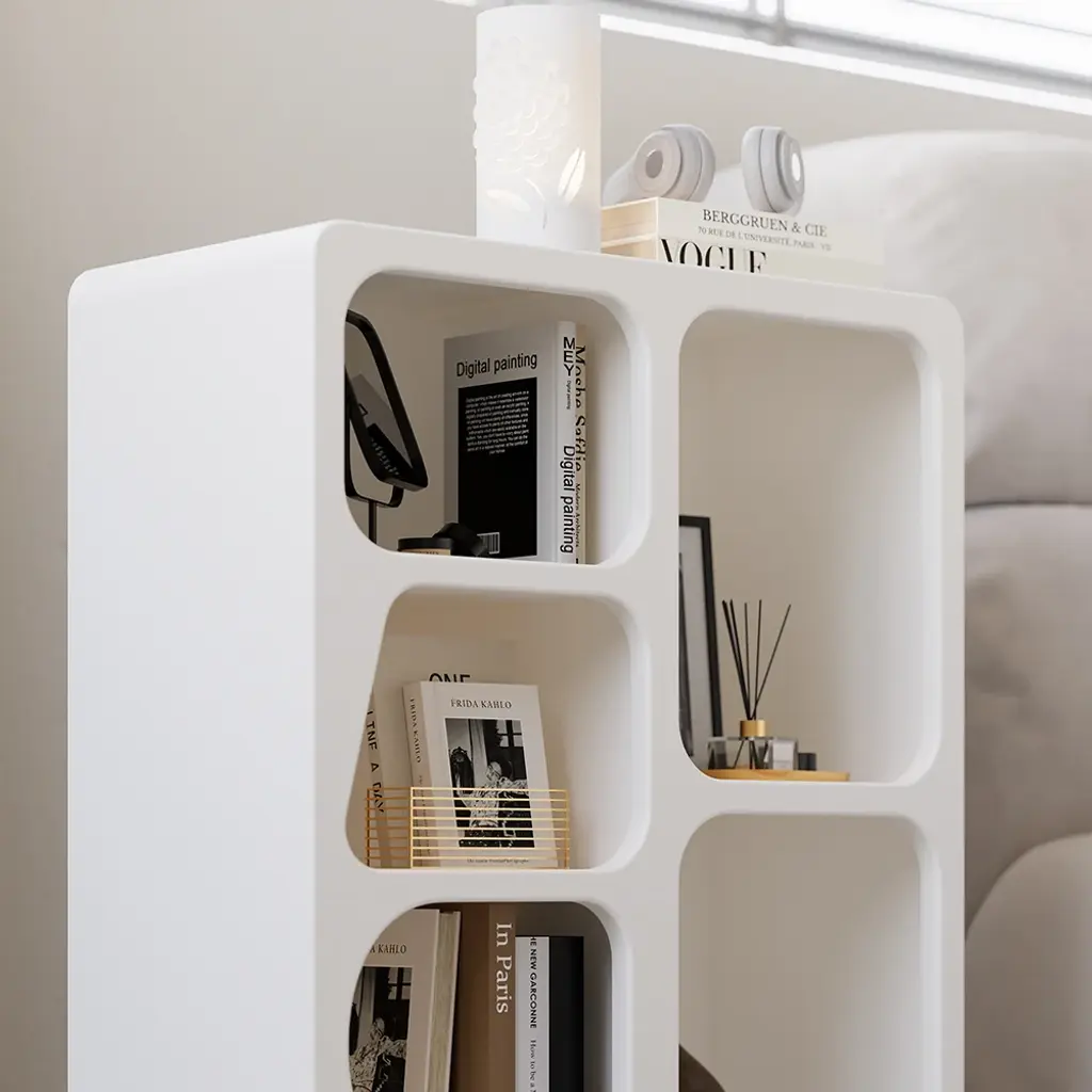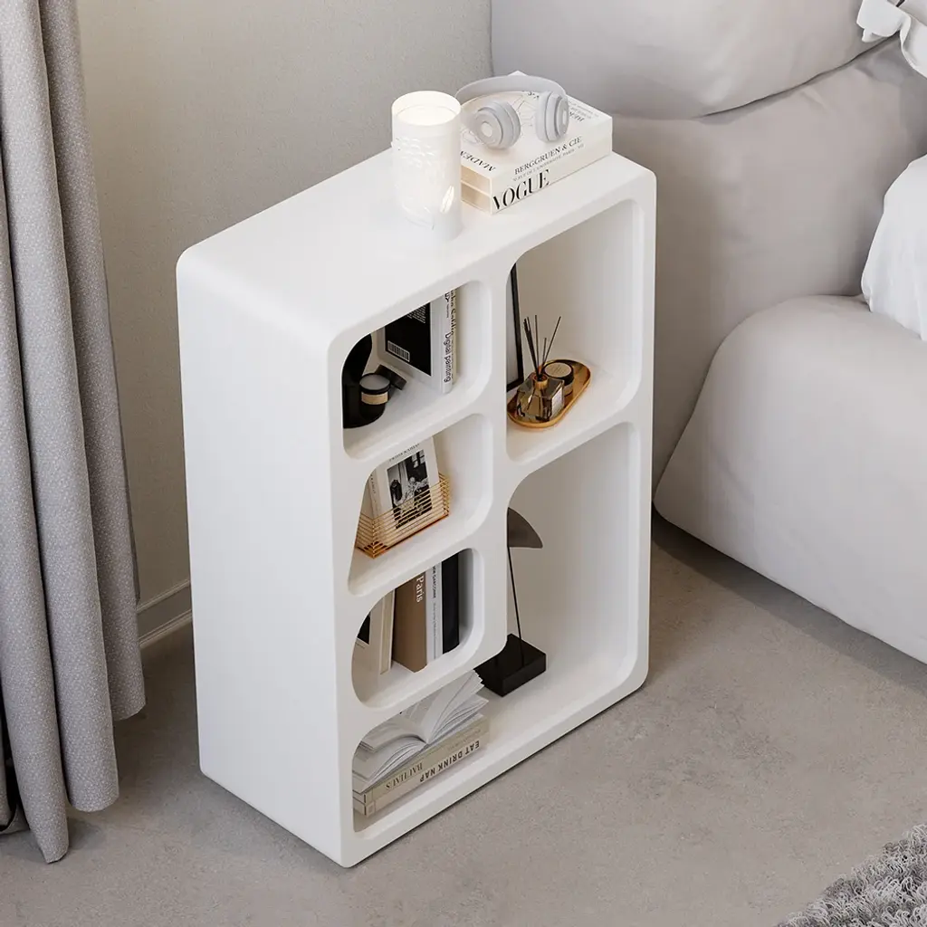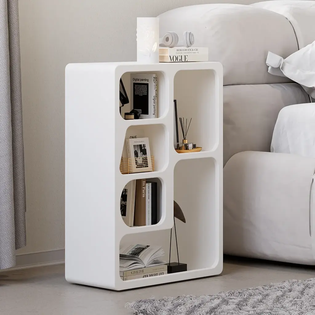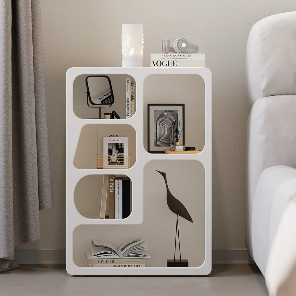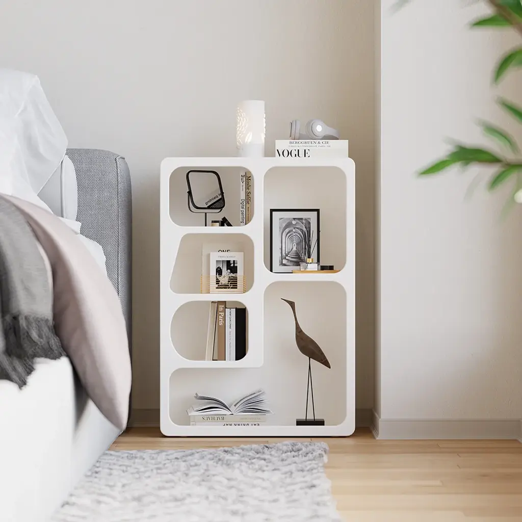 Upgrade your living space with this art deco nightstand with multiple open shelves for storage. Crafted from high-quality MDF with white tone finish, features a geometric design of arched and curvy compartments. You can easily organize your belongings, keeping your home clutter-free. This nightstand is not only limited in bedroom but also is the perfect decoration in living room. This storage cabinet with chic design can bring your house novelty and stylishness.