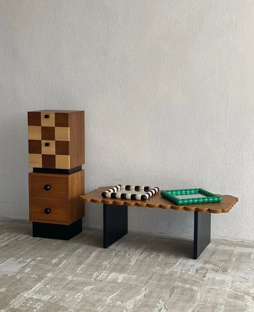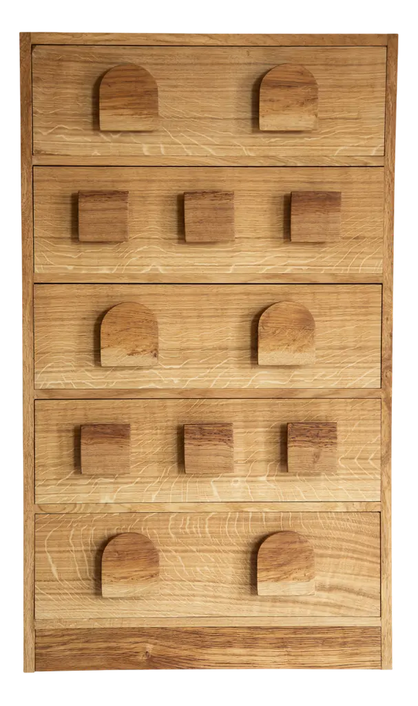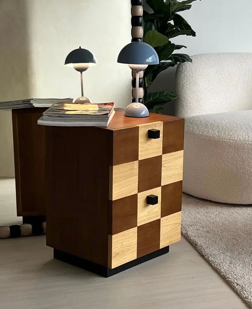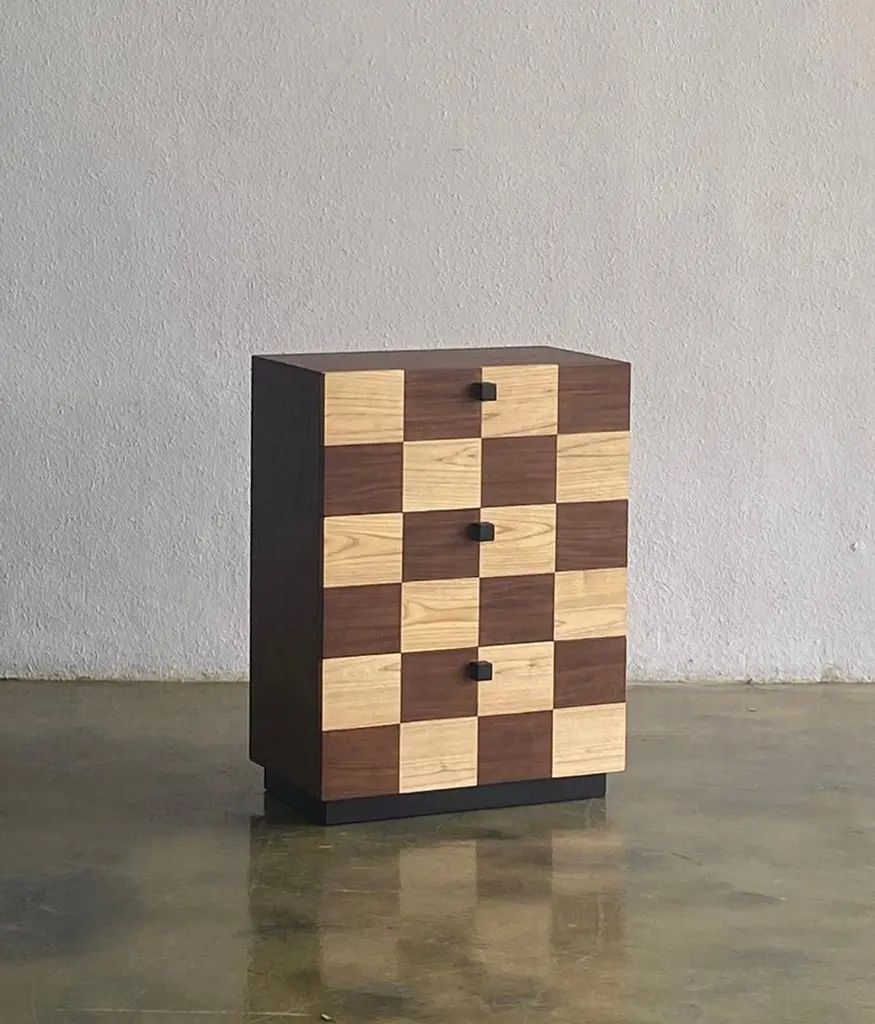 Designed by Studio Kallang and handcrafted by generational artisans in Central Java. The Coklat bedside is an ode to classic midcentury modern forms with a modern, playful twist. Handcrafted from solid teak and sungkai wood native to the region. Both drawers are rail-mounted to ensure smooth opening and closing. The Coklat bedside is an heirloom-quality piece that will add warmth and character to any space. Dimensions: W40 x D35 x H55 cm
