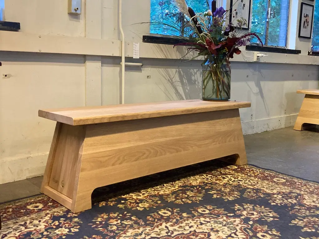 Old school.The Old school is based on the traditionally known furniture in schools. Due to its clean and elegant lines, it fits in every environment. The Old school is in place both in the spotlight and in the background. It is therefore a multifunctional design where the possibilities are endless: as seating furniture, side table, TV bench, coffee table , nightstand. You get multiple furnitures in one. In every function, this furniture will give a fresh and exciting look to your environment. Because the Oldschool is available in 3 sizes, there is always a place for this elegant design.This item is handbuild by us and is created out of 4cm thick oak.