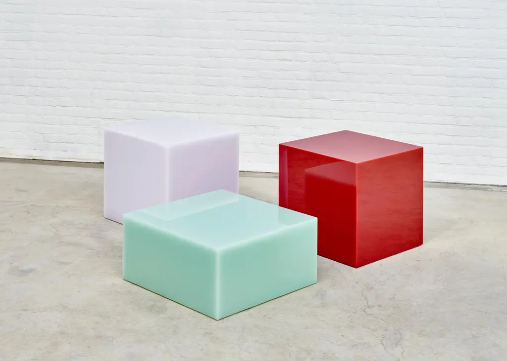 A contemporary design classic by the Dutch designer Sabine Marcelis. Seemingly solid objects with a magical glowing edge. The unique translucent and highly polished properties of the material give a magical effect to these multifunctional pieces. Possible functions include side table, coffee table, bedside table, pedestal or just a sculptural object to transform any room.Materials: High polished polyester resin, anti-slip feet. Can be fitted with discreet wheels if needed. Color: Mint (pictured) Measures: H: 30 x 60 x 60 cmColours: Mint, Bubblegum, Peach, Marshmallow, TomatoCustom colours available on requestDimension:Large: 60 x 60 x 60 cmMedium: 50 x 50 x 50 cmLow: 30 x 60 x 60 cm