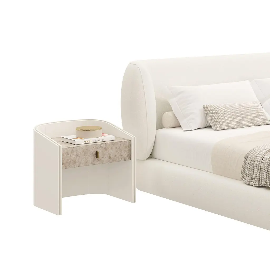 Coralina Ii Nightstand, Lacquered And Partridge Eye White Veneer