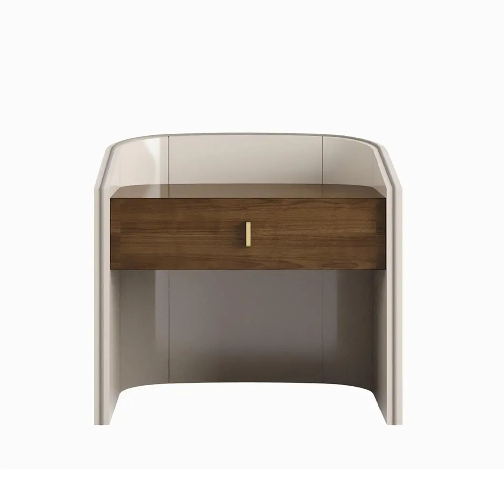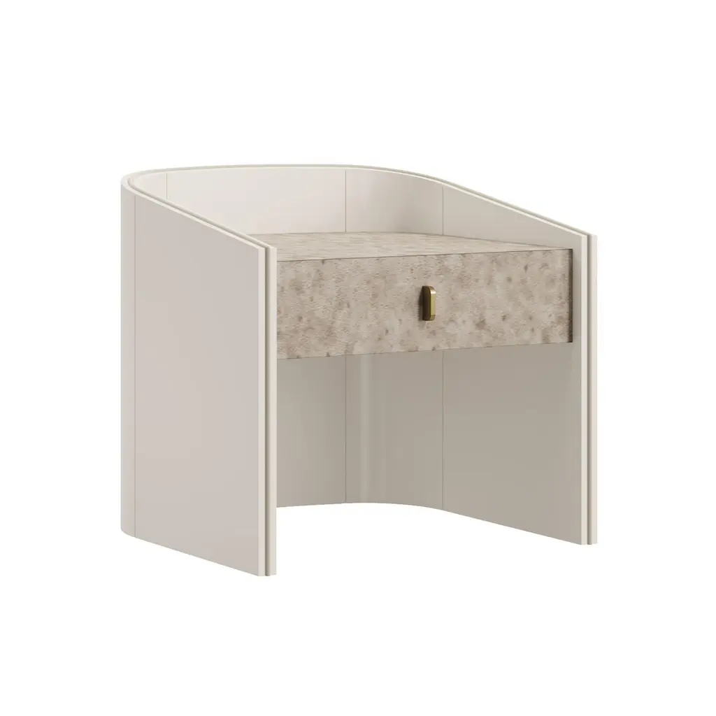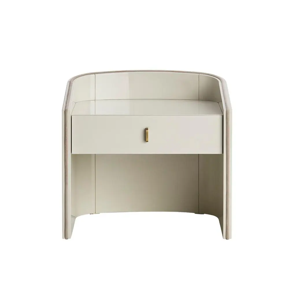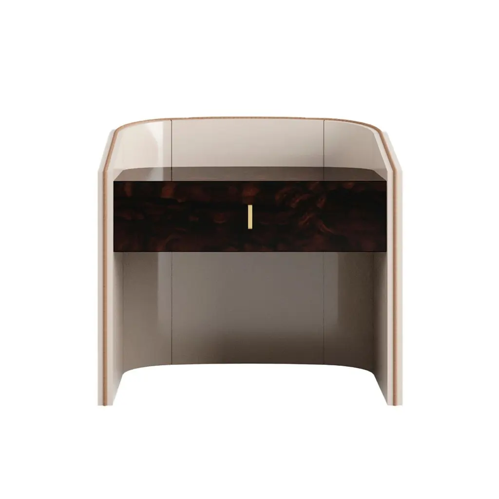Elegant and sophisticated, the bedside table Coralina is characterized by a curved structure in lacquered finish, on which the drawers in are inserted. This bedside table also allows the combination of different finishes between the curved structure and the drawers, adapting to any need and style. It can be fully finished in matte or glossy lacquer or combined with wood veneer drawer. With metal handles, in brass or stainless steel, and a special piping that surrounds the entire structure to complete its uniqueness.Primary image: Shown in acquered structure in NCS S 2005-Y20R color, Partridge Eye White Veneer and Antique Brass handle. Prices for different finishes on request.Essence Collection celebrates the timeless beauty of organic shapes by combining painted woods, natural stones, and a palette of neutral tones to create a luxurious aesthetic.The passion to create high-quality luxurious furniture, capable of providing emotional experiences is the reason for our existence and continuous evolution.Experience the unique atmosphere created by our Essence Collection.