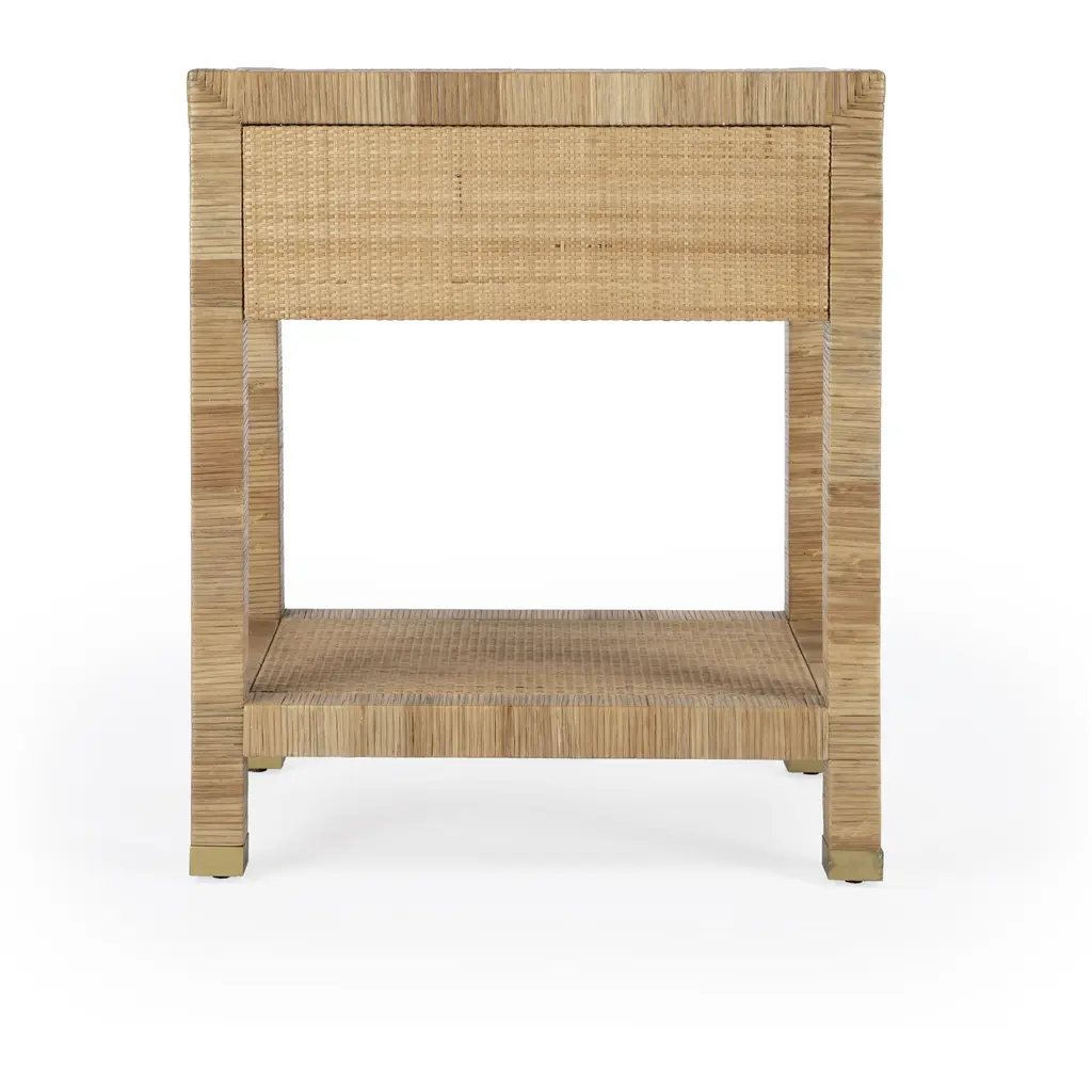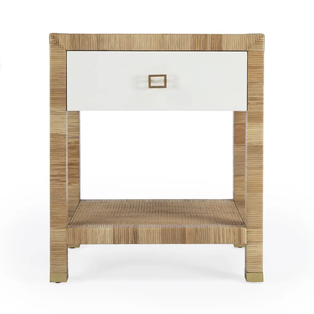 Butler Specialty Company Corfu 1 Drawer Natural Rattan Nightstand, Natural and White