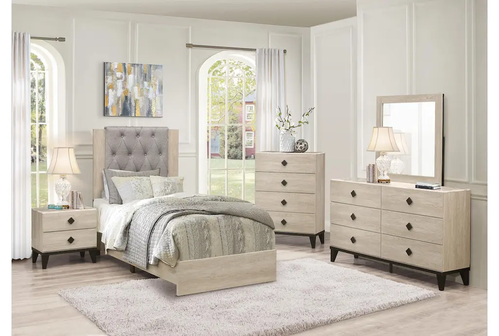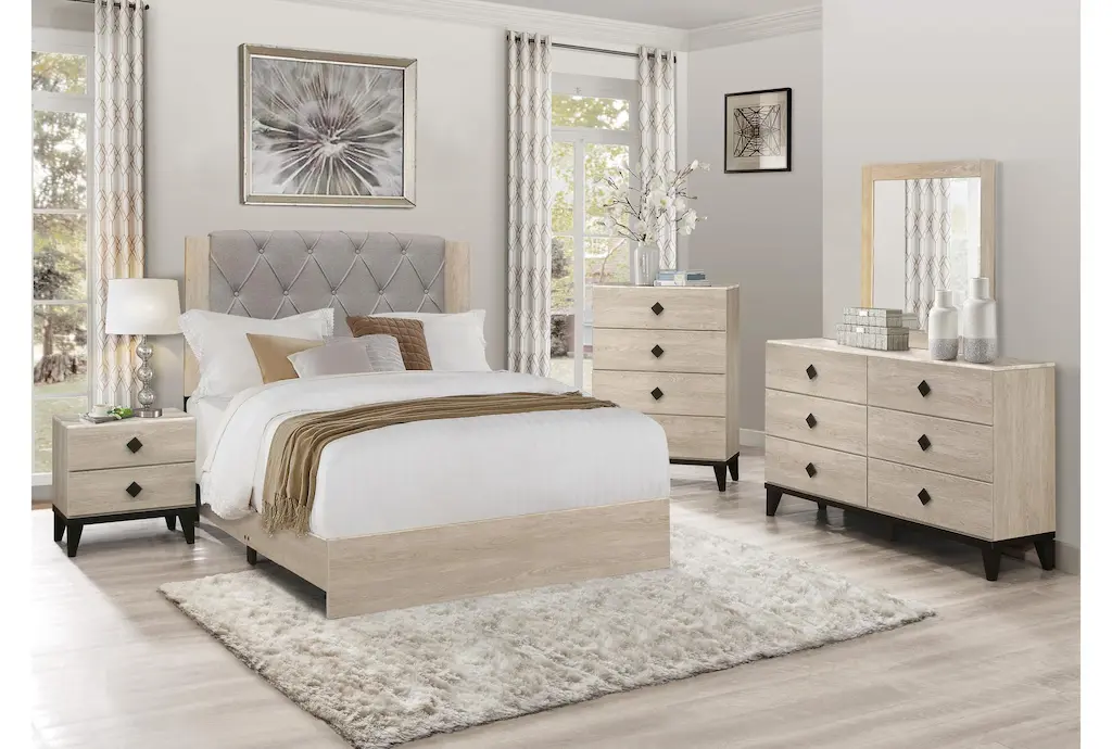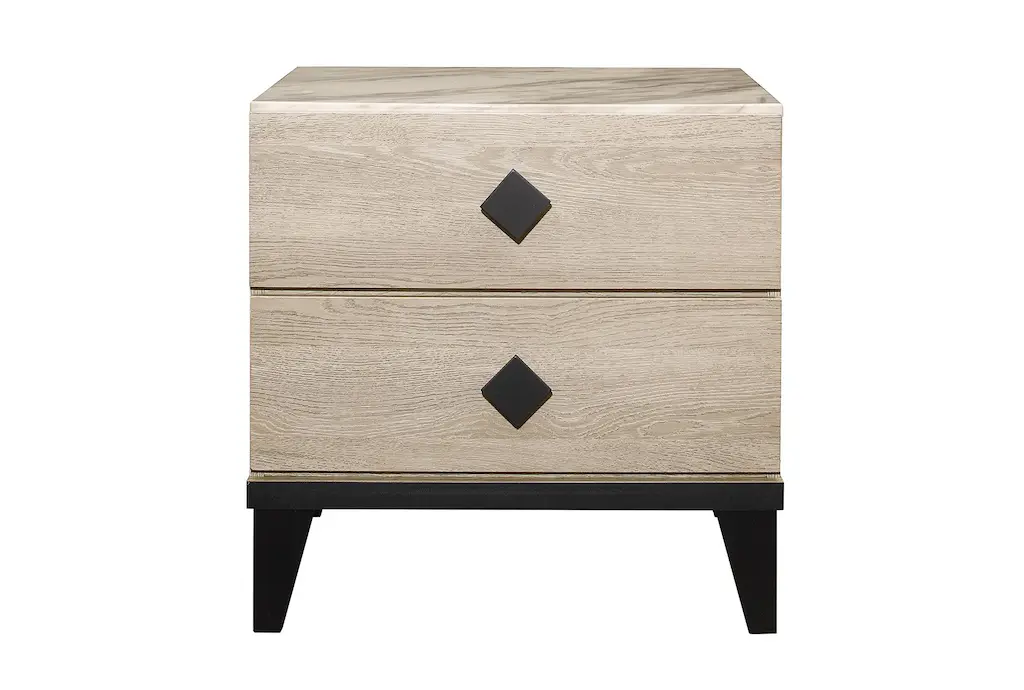 This 23" contemporary style nightstand is crafted from natural wood with a charming marble secondary material. Assembly is required, but convenient parcel shipping makes it easy to add this piece to your bedroom decor.