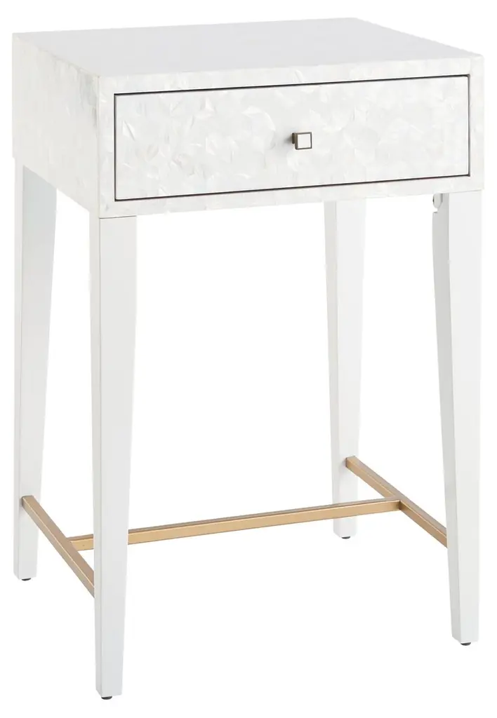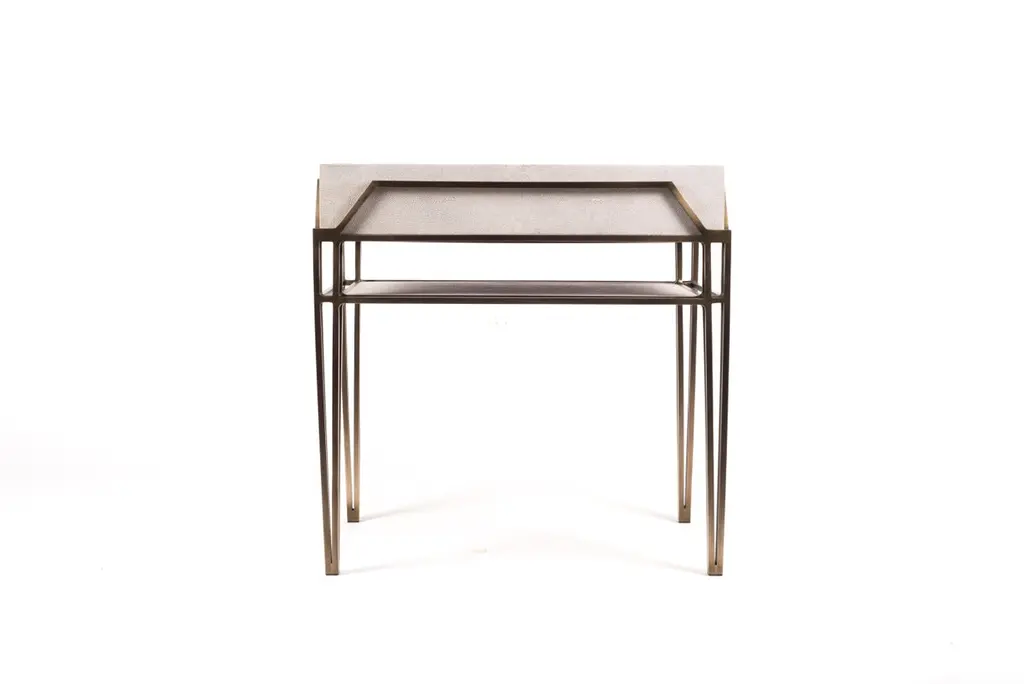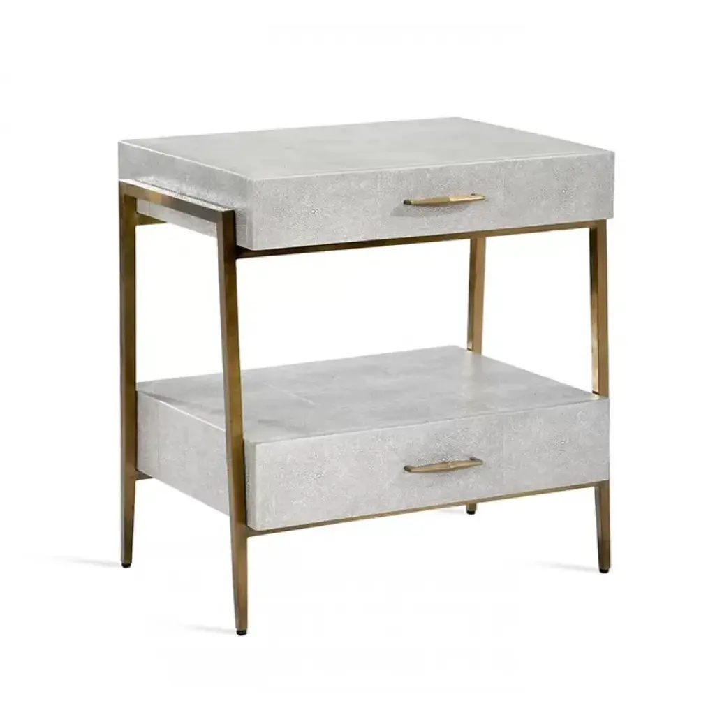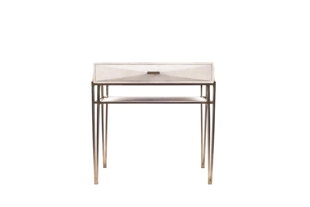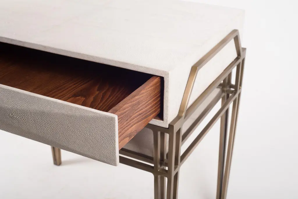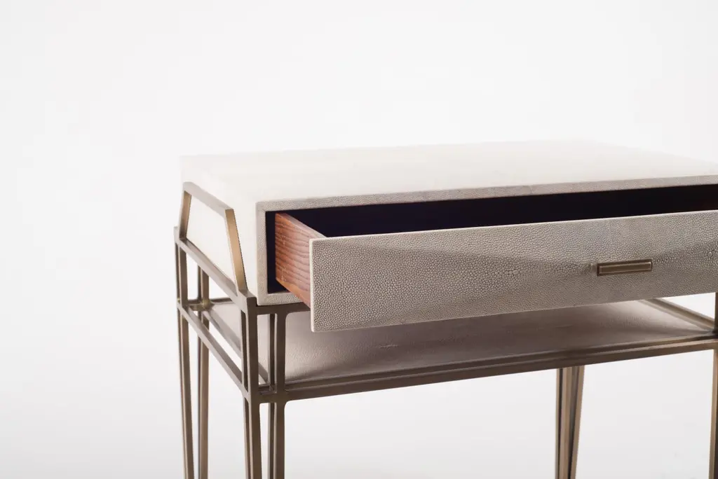 "Cosmia" Bedside Table In Cream Shagreen And Bronze-Patina Brass By R&y Augousti