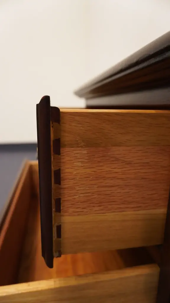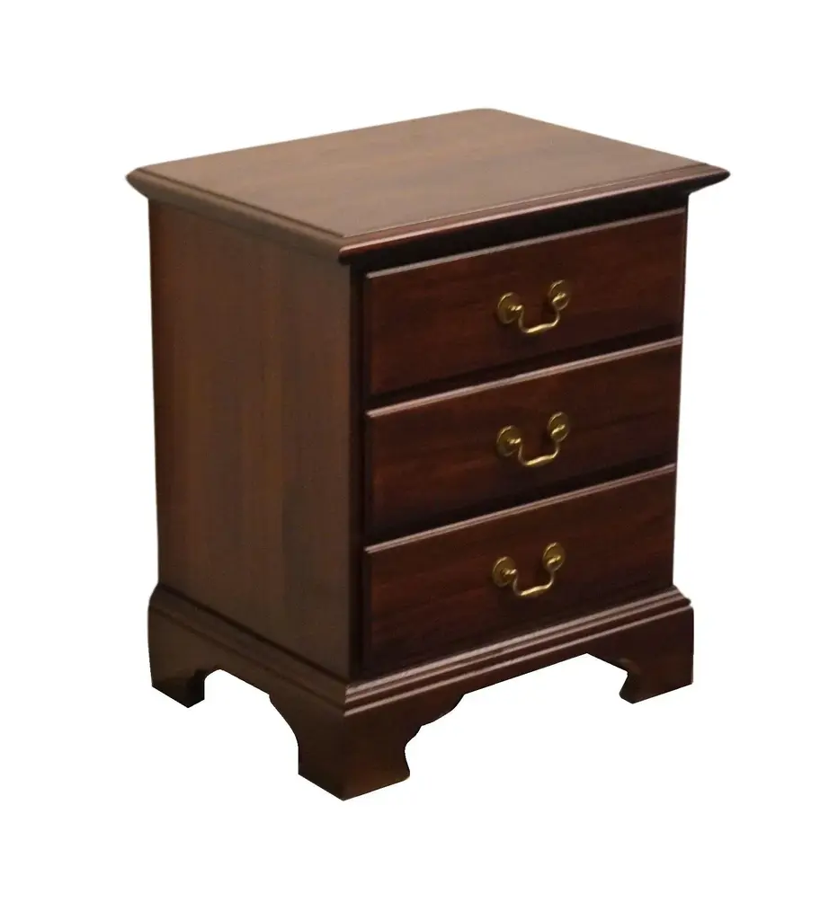 CRESENT FURNITURE Solid Cherry Traditional Style 23" Three Drawer Nightstand 26.25" High 23.75" Wide 16.5" Deep We specialize in high end used furniture that we consider to be at least an 8 on a scale of 1 to 10 regarding condition, unless otherwise noted.