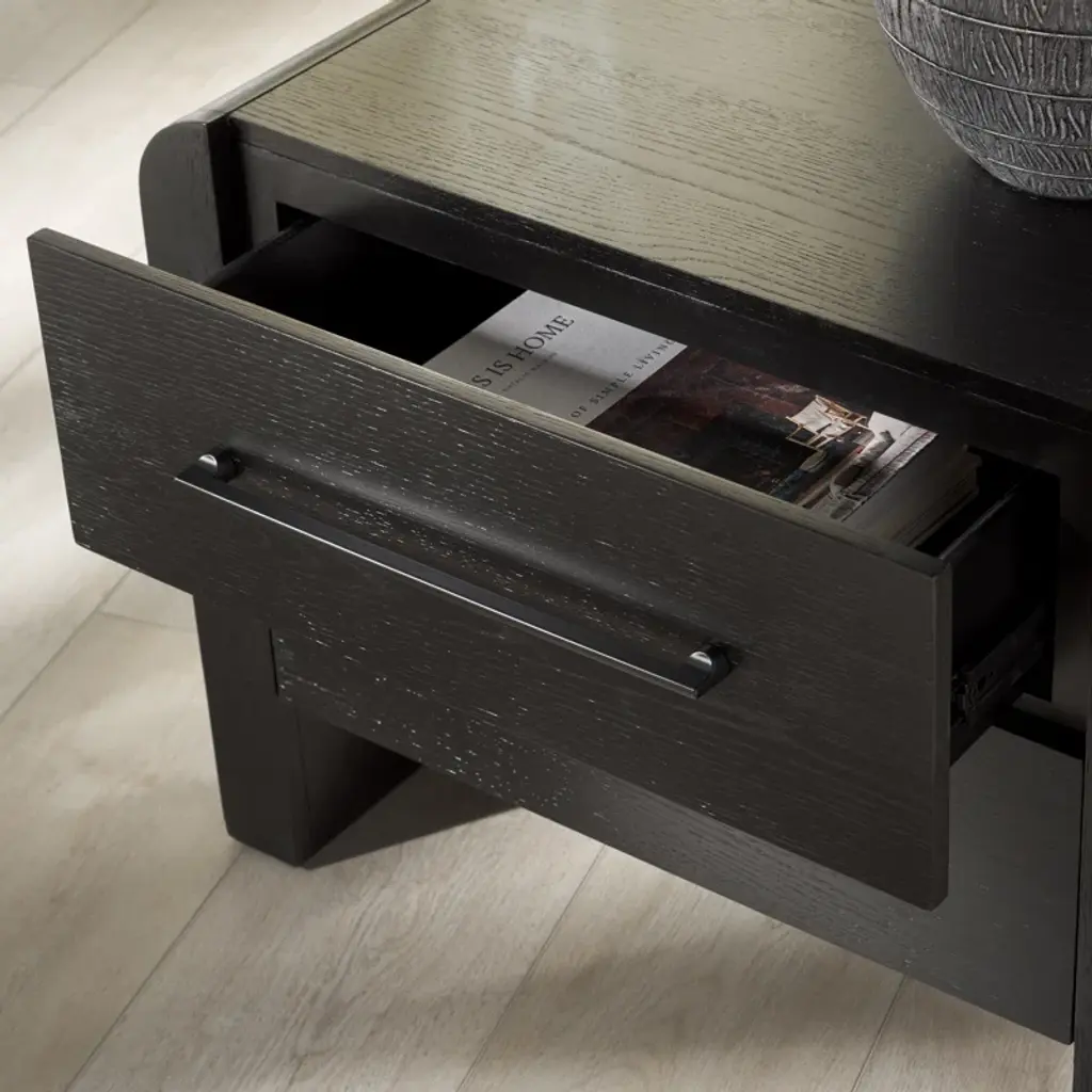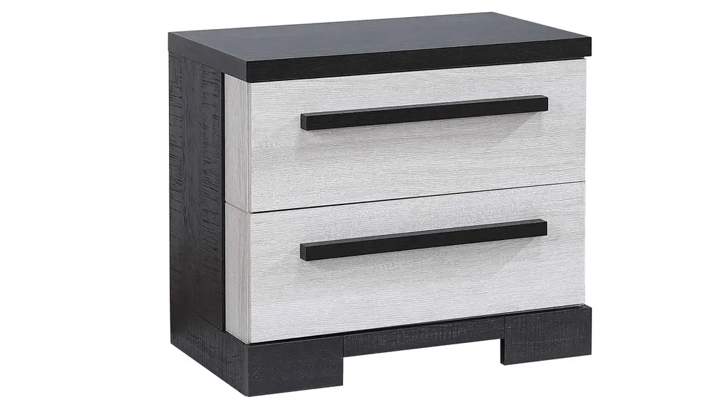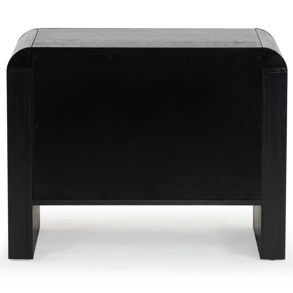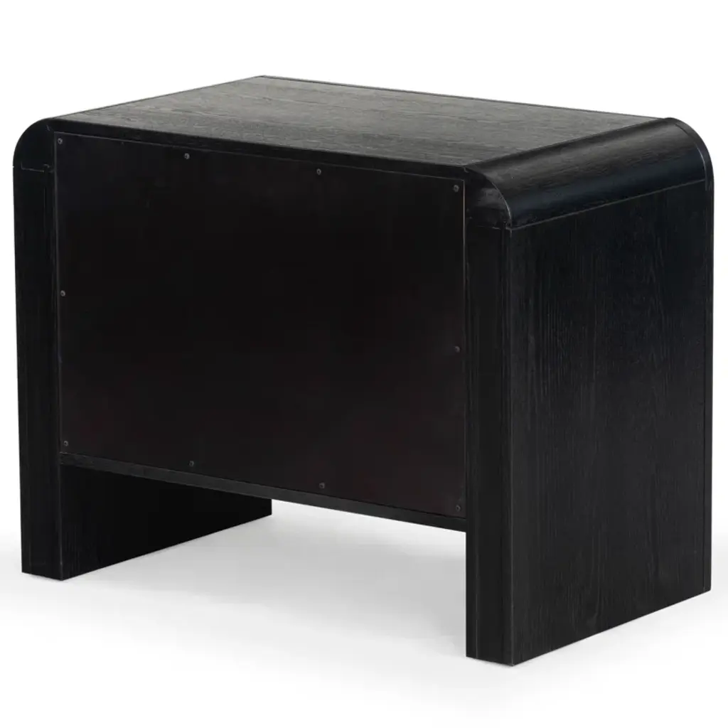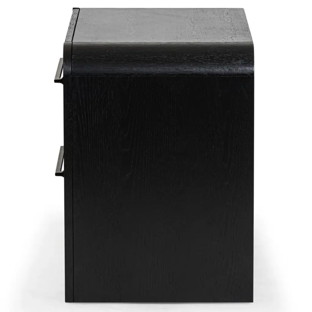Introducing the striking Katrina Wood 2-Drawer Nightstand, meticulously crafted to add an elegant touch to your bedroom decor. This masterpiece is artfully designed in a sophisticate classic black hue, promising to stand out in any room setting, while still offering a serene ambiance. Posing an impressive built using solid rubber wood, the nightstand promises unparalleled resilience without compromising on aesthetics. The notable detail of Oak veneer provides an added depth and dimension that is sure to captivate onlookers. Opening up to two spacious drawers, this piece offers ample storage for all your bedside essentials while keeping clutter at bay. The nightstand also boasts zinc metal elements that add subtle glitz and further enrich its overall design. Grace your living space with the Katrina Wood 2-Drawer Nightstand - a fusion of style, function, and durability, which pays homage to contemporary design while still keeping an aura of timelessness. Get ready to redefine your living space with a piece that isn't just a showstopper, but a true game-changer!