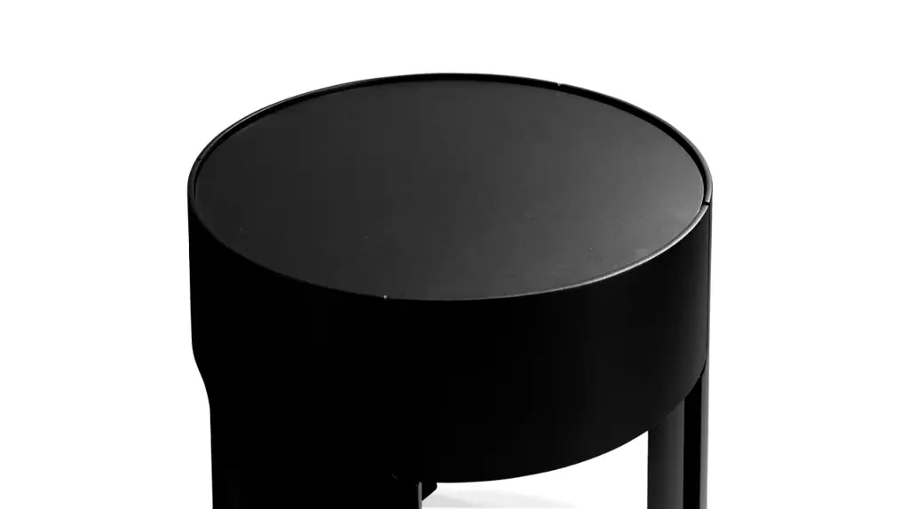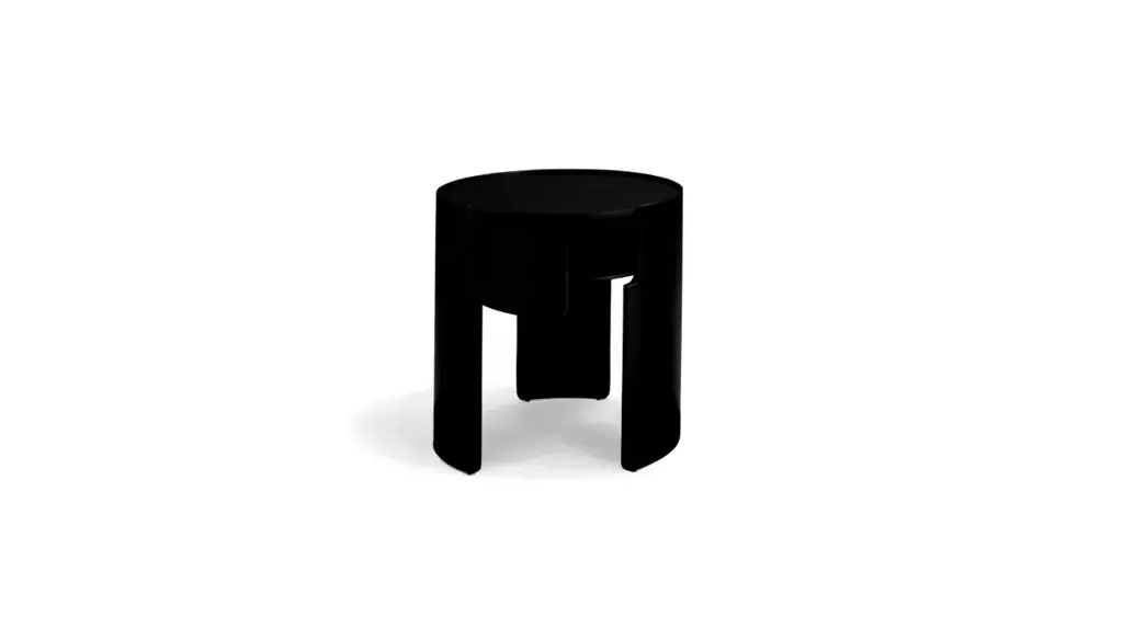 Bedside table in MDF and plywood, matte or high-gloss lacquer finish. Top in 4mm-thick back-lacquered glass. Small storage space with door opening to the left. Made in Europe