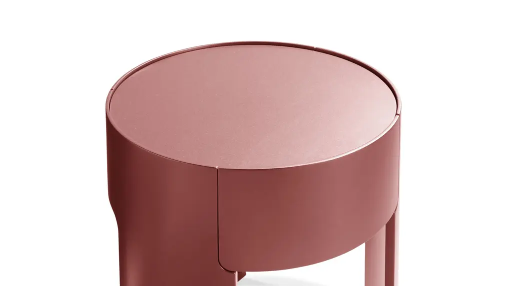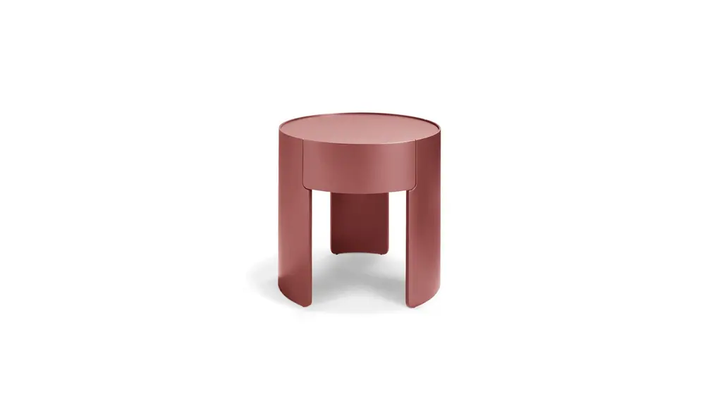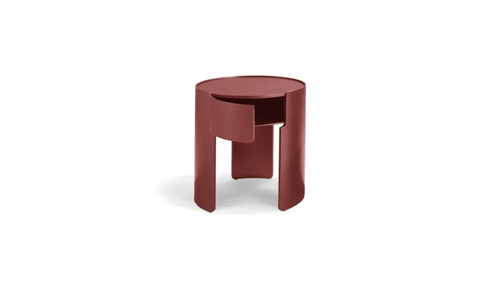 Bedside table in MDF and plywood, matte or high-gloss lacquer finish. Top in 4mm-thick back-lacquered glass. Small storage space with door opening to the left.<br><br>Made in Europe
