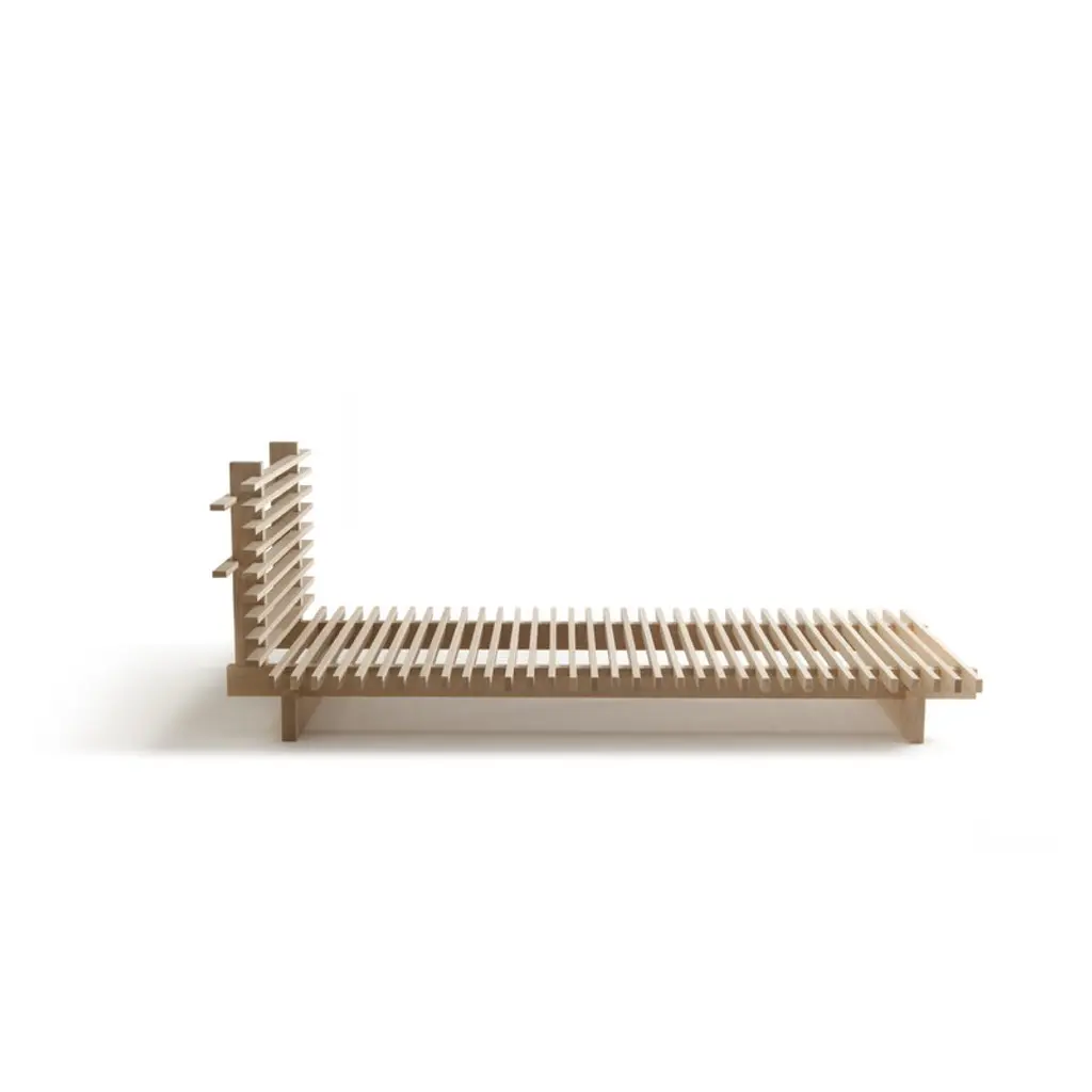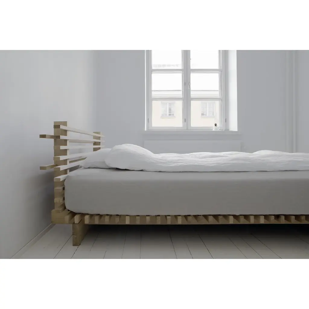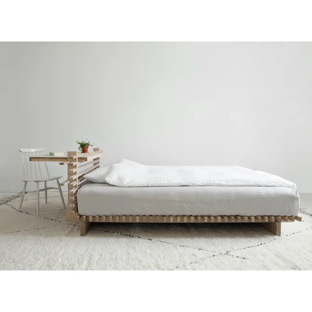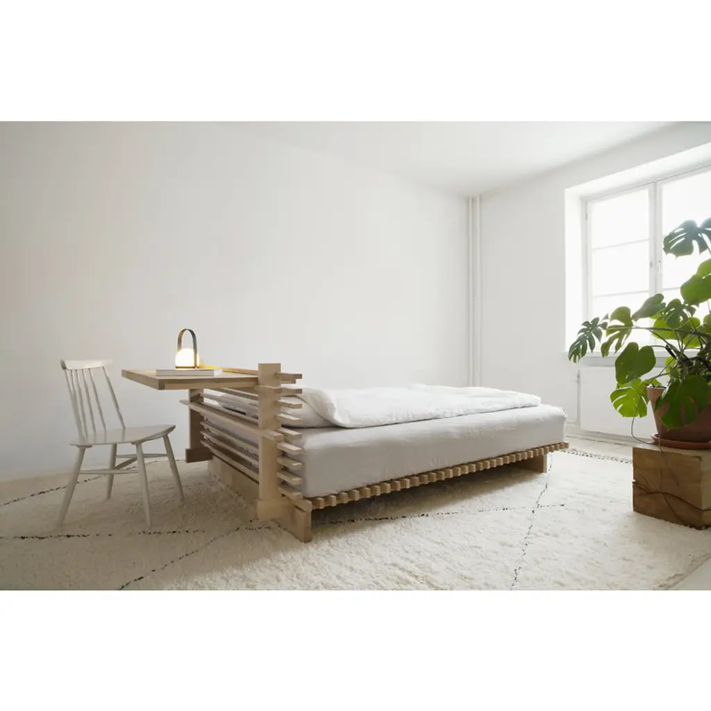 The Cubile 100 bed by Collaboratorio is named after the beds of Ancient Rome: in addition to an actual bed, the word cubile denotes more generally a place of rest. The beautifully natural untreated oak highlights Cubile’s simple form and brings a sense of calmness to the bedroom. The bed fits a 100x82.68 in (210 cm) mattress and is 8.46 in (21,5 cm) high, and it can be assembled without any screws or tools. The spare and sleek Cubile is the perfect choice for a minimalist home. The Cubile bed can be supplemented with the Cubile 100 headboard and the Cubile 100 desk that can function either as a nightstand or a work desk and that can also be slid inside the headboard when not in use. The Cubile bed system is made ecologically in Finland, with the cabinetmakers using as much of the oak wood as possible to prevent materials from going to waste.