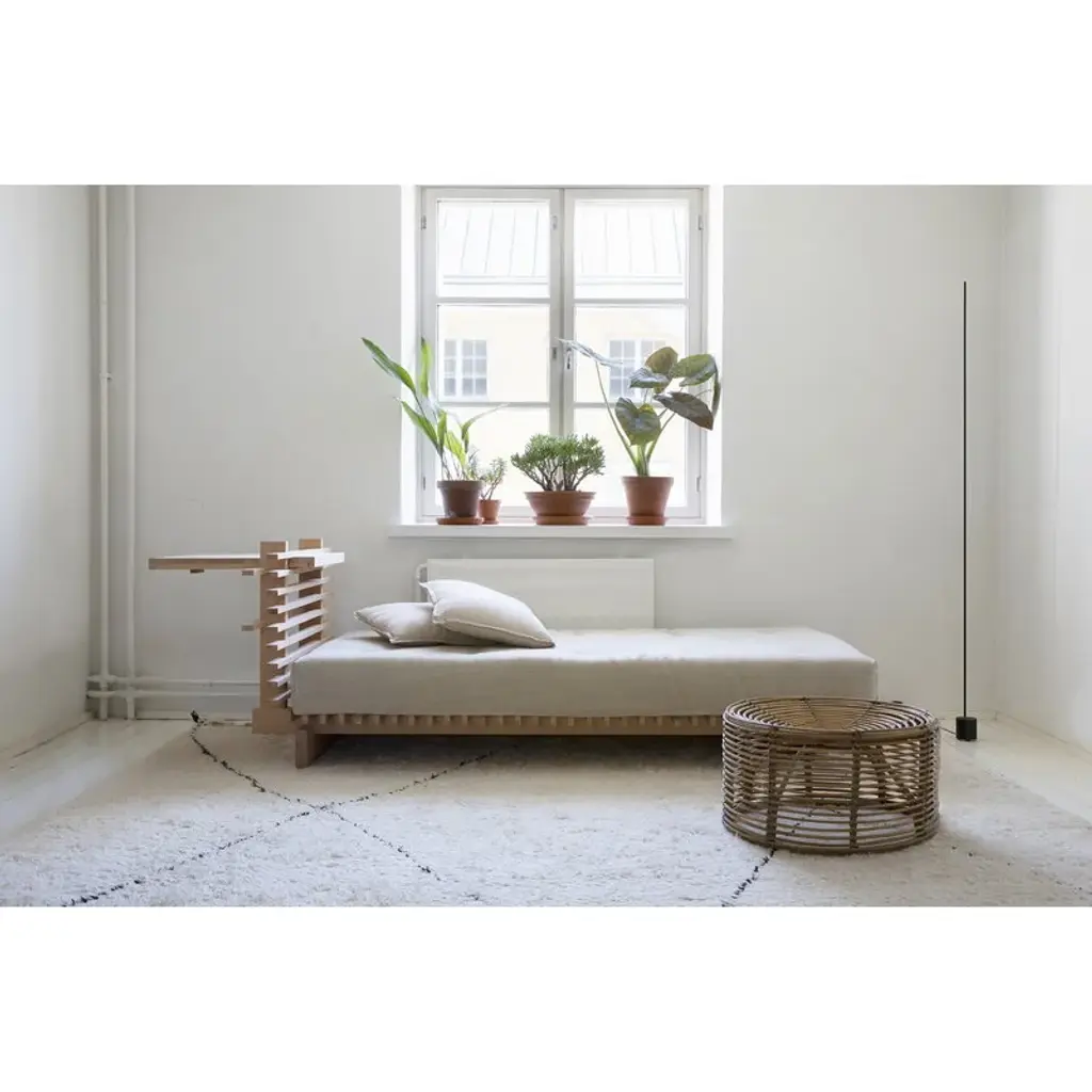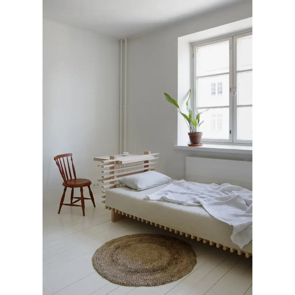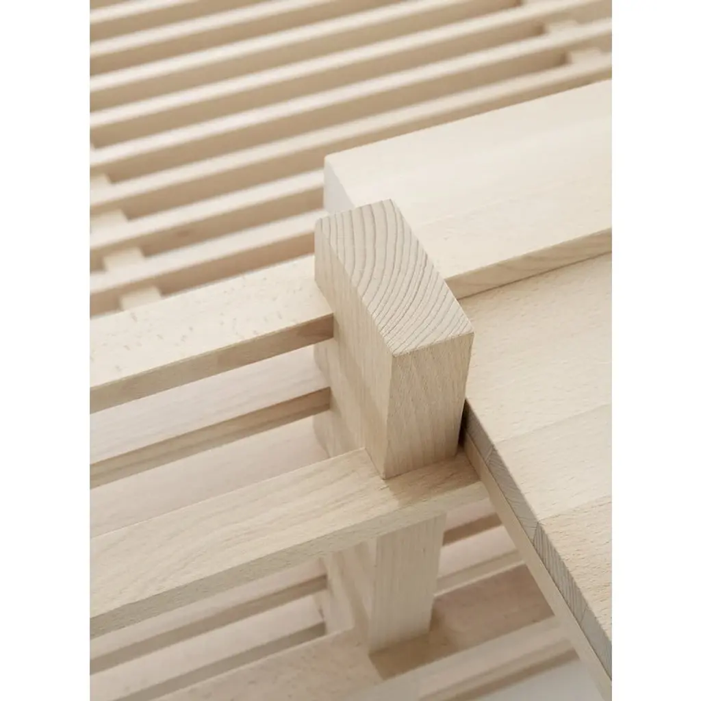 The Cubile 100 headboard is a part of the Cubile bed system by Collaboratorio. Cubile is named after the beds of Ancient Rome: in addition to an actual bed, the word "cubile" denotes more generally a place of rest. The beautifully natural untreated beech highlights Cubile’s simple form and brings a sense of calmness to the bedroom. The Cubile 100 bed is sold separately, and, in addition to the 23.23 in (59 cm) high headboard, the bed system can be supplemented with the Cubile 100 nightstand. No screws or tools are needed for assembly. The Cubile bed system is made ecologically in Finland, with the cabinetmakers using as much of the wood as possible to prevent materials from going to waste.