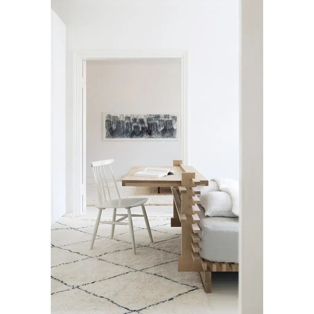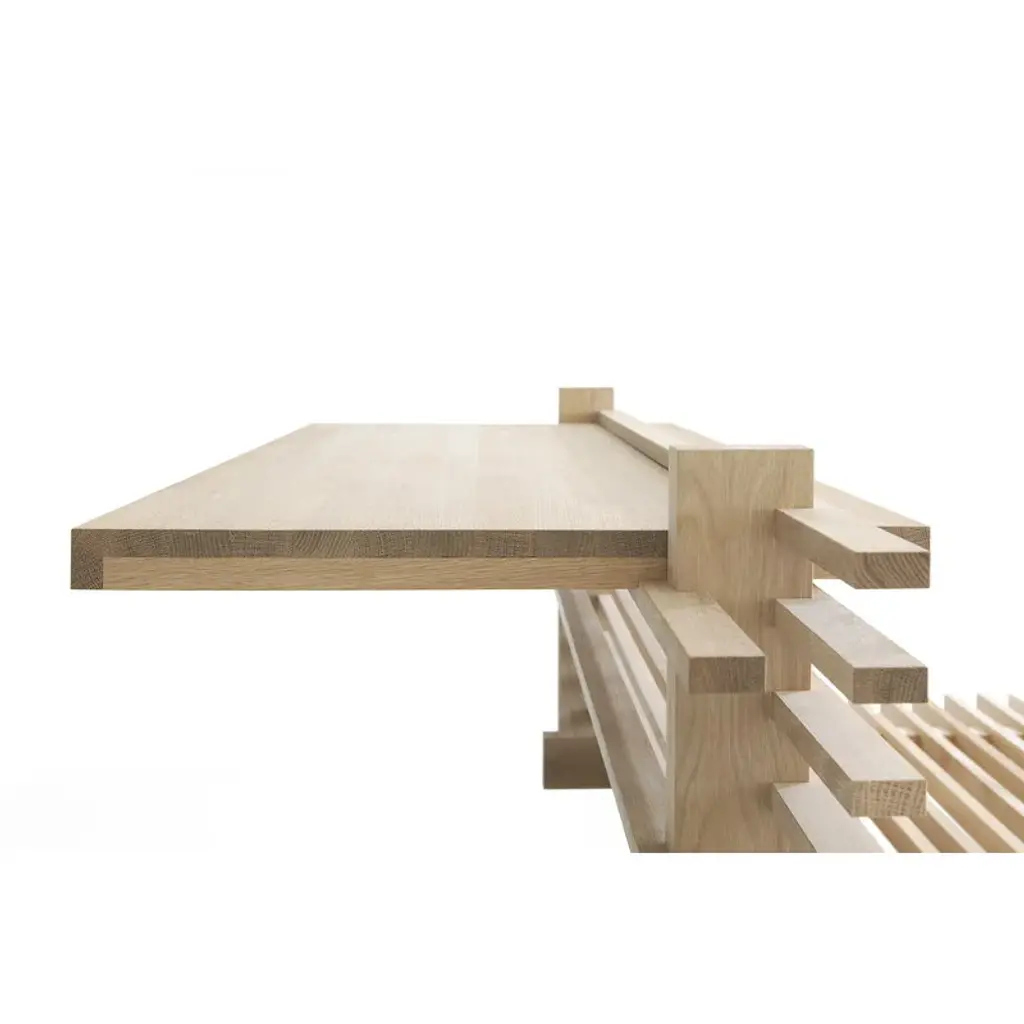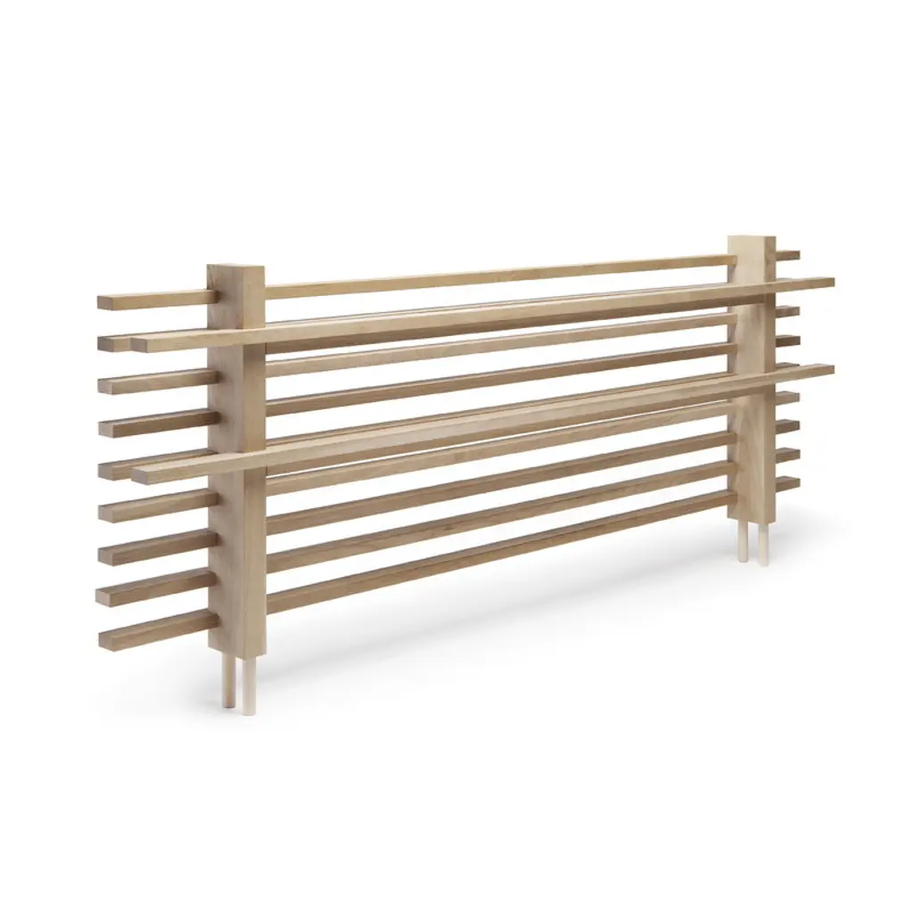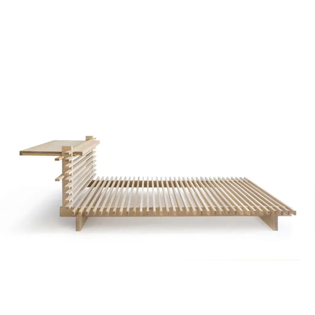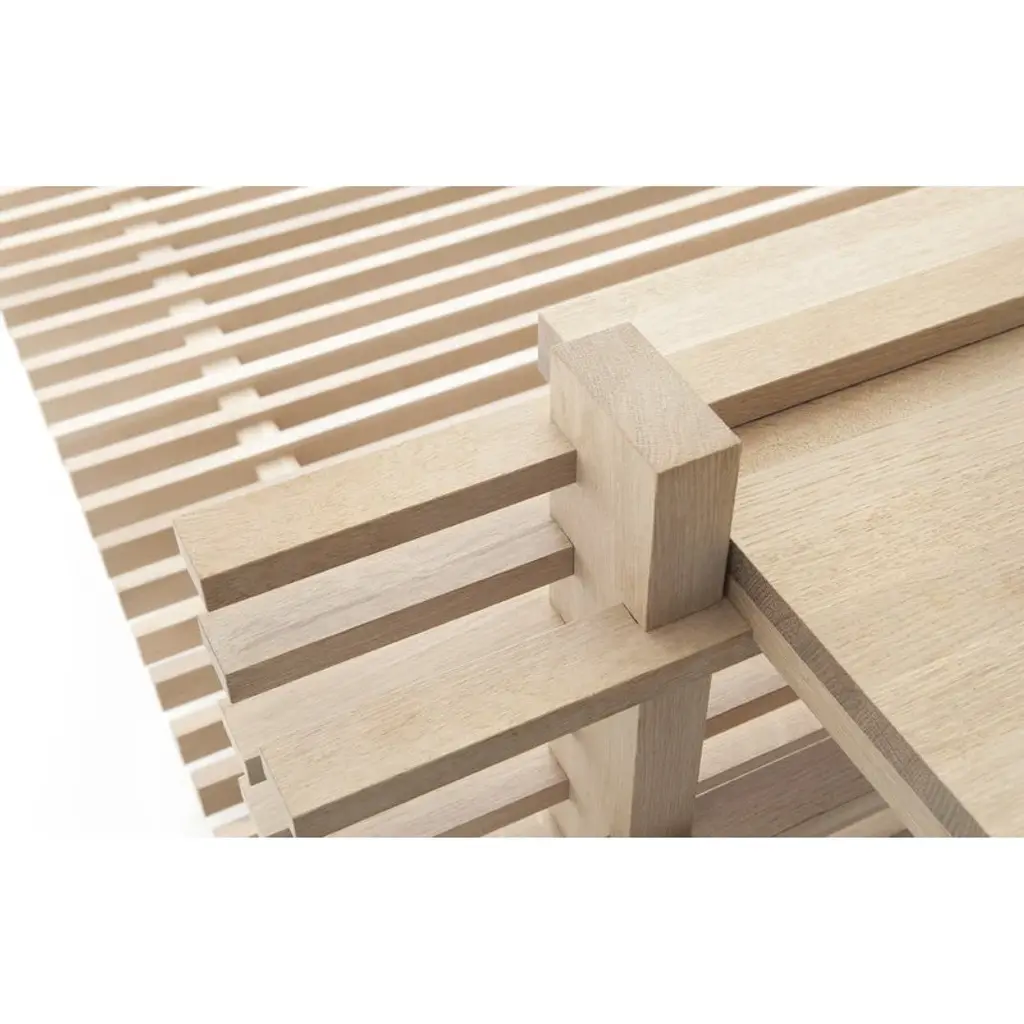 The Cubile 160 headboard is a part of the Cubile bed system by Collaboratorio. Cubile is named after the beds of Ancient Rome: in addition to an actual bed, the word "cubile" denotes more generally a place of rest. The beautifully natural untreated oak highlights Cubile’s simple form and brings a sense of calmness to the bedroom. The Cubile 160 bed is sold separately, and, in addition to the 23.23 in (59 cm) high headboard, the bed system can be supplemented with the Cubile 160 nightstand. No screws or tools are needed for assembly. The Cubile bed system is made ecologically in Finland, with the cabinetmakers using as much of the oak wood as possible to prevent materials from going to waste.