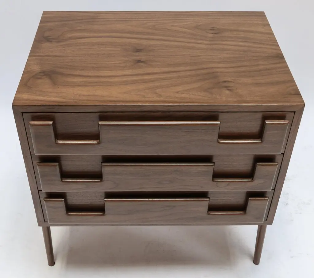 Custom Midcentury Style Walnut Nightstands With Three Drawers By Adesso Imports