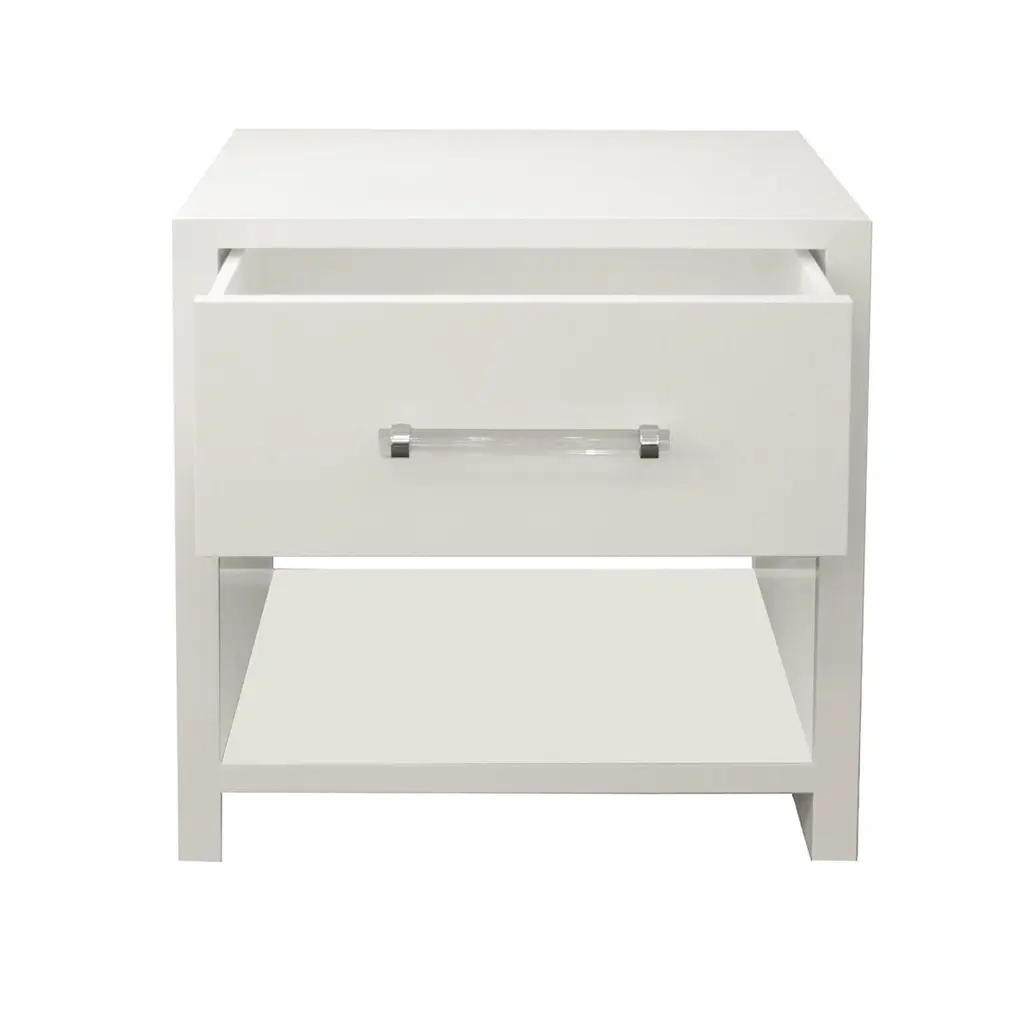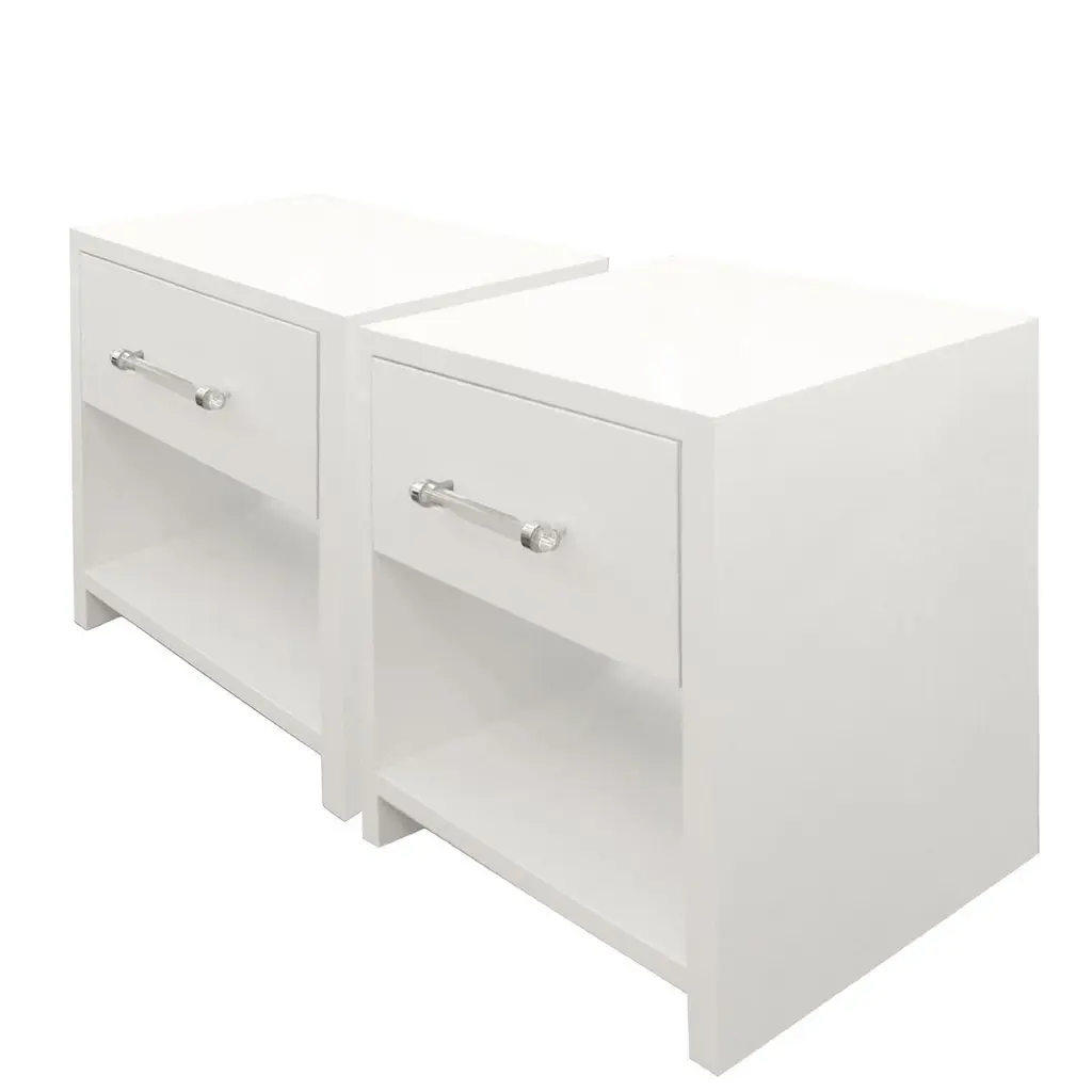Custom Pair Of Lacquered Nightstands With Chrome & Lucite Handles