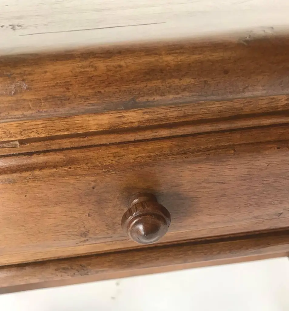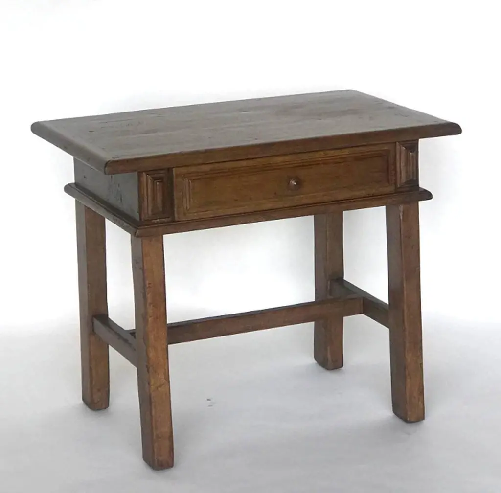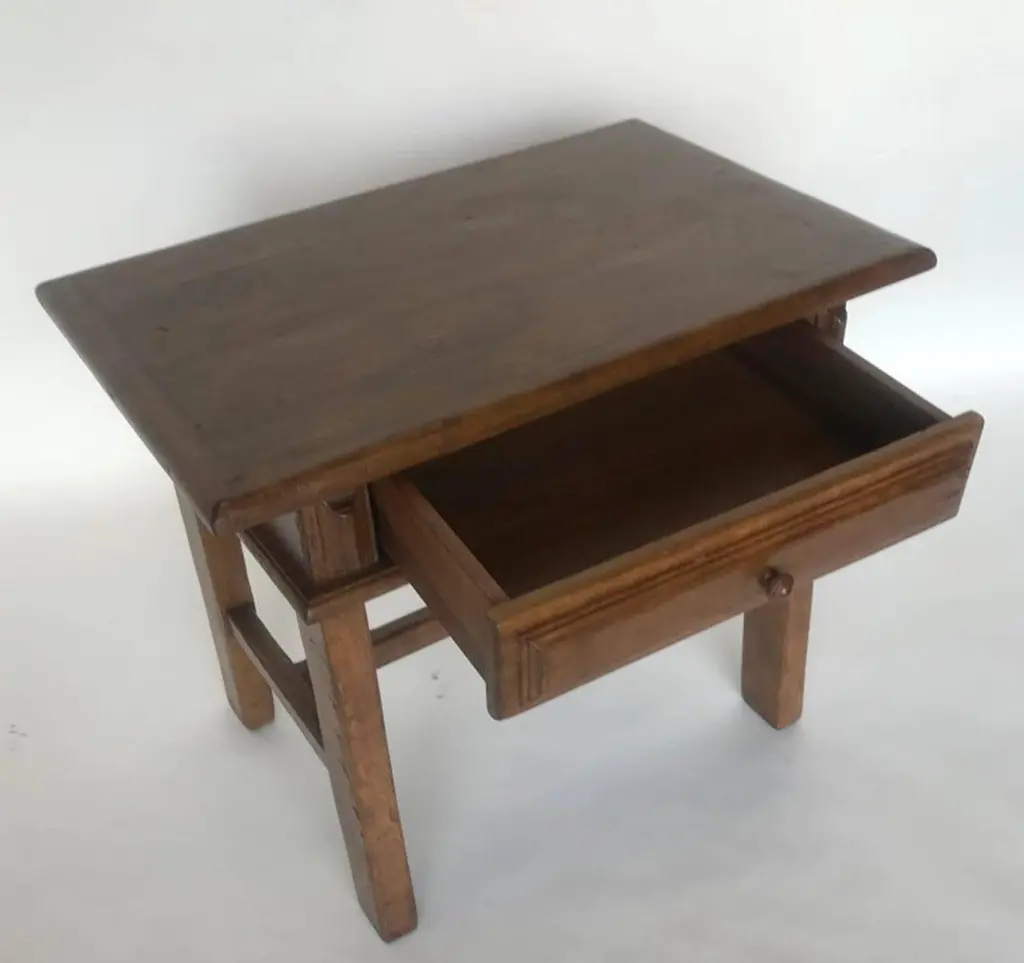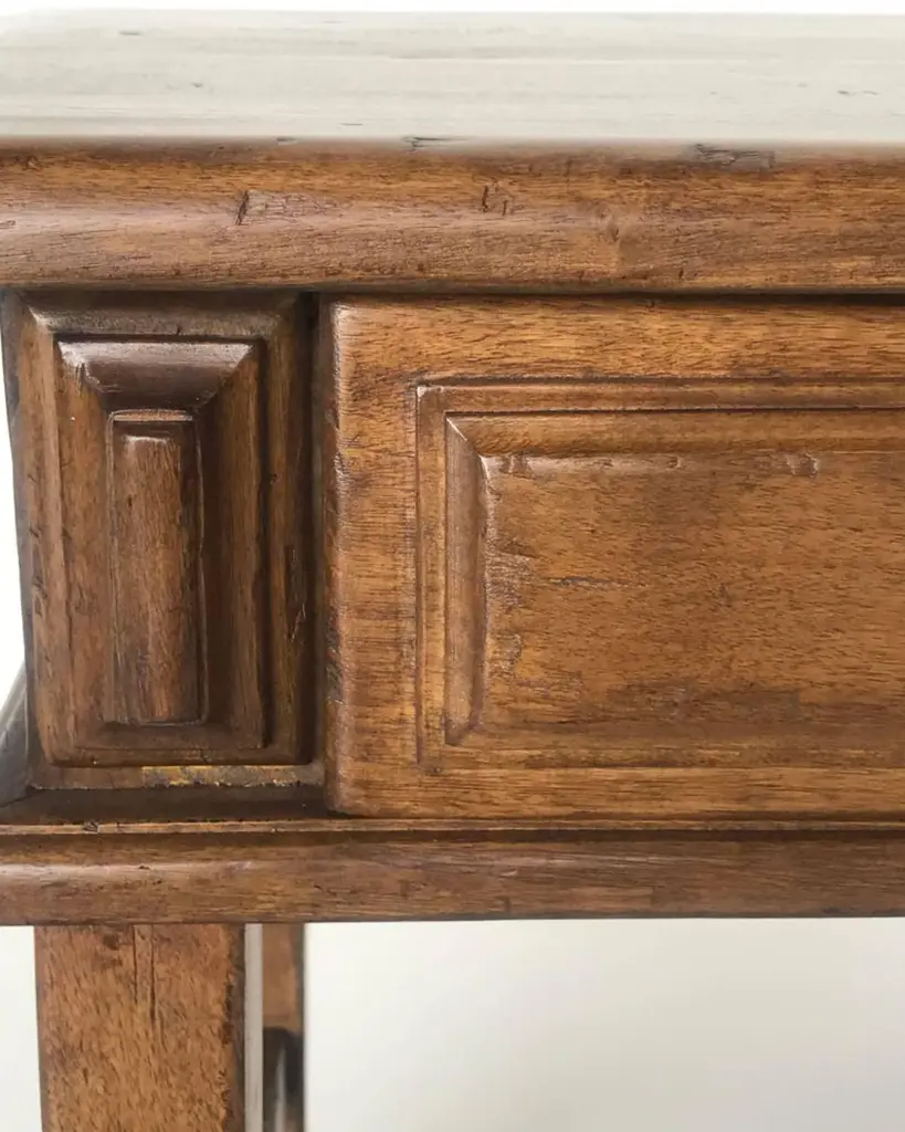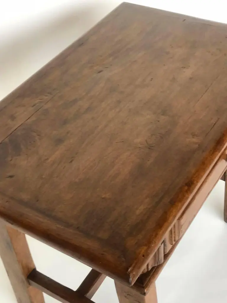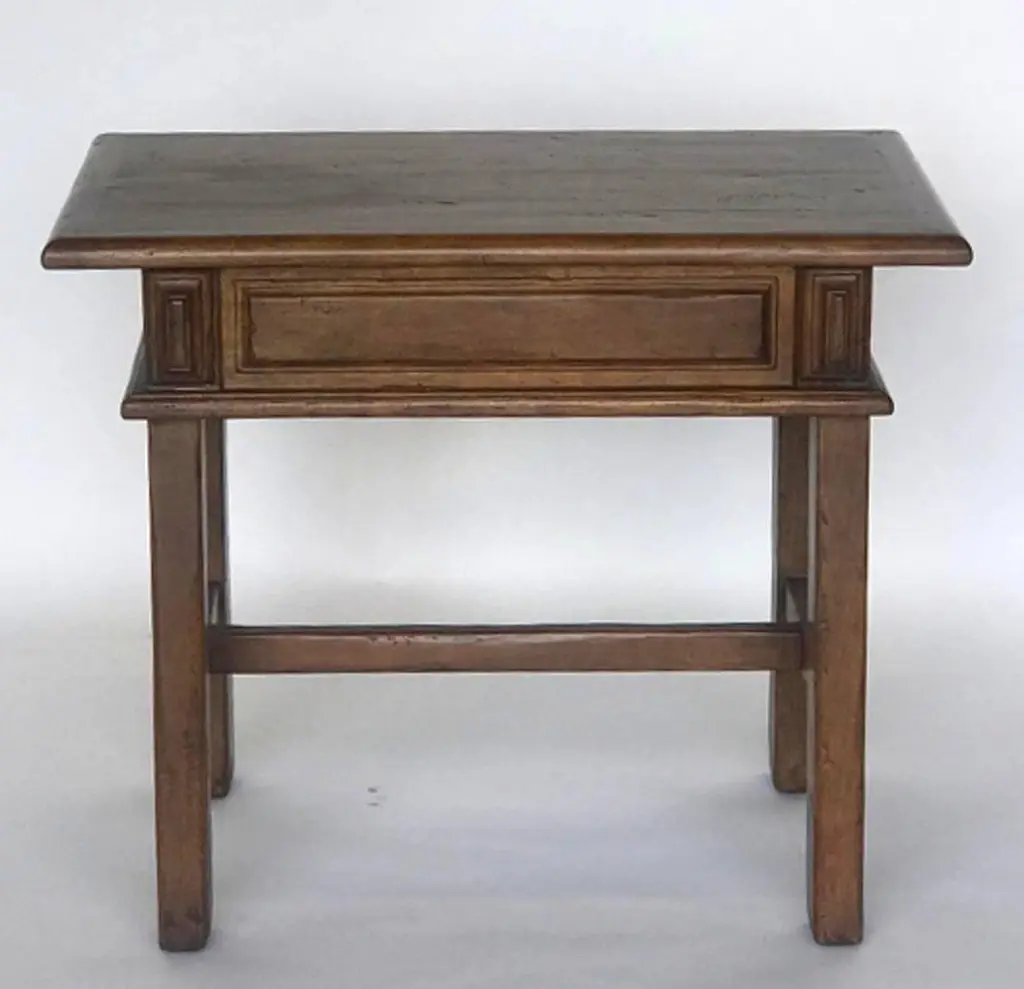 Custom table with drawer. Can be made in any size and finish. Shown here in walnut with a walnut #1 finish and heavy distress. Made in Los Angeles by Dos Gallos Studio.CUSTOM PRICES ARE SUBJECT TO CHANGE. PLEASE INQUIRE BEFORE ORDERING. ALL CUSTOM ORDERS ARE NON RETURNABLE. FINAL SALE
