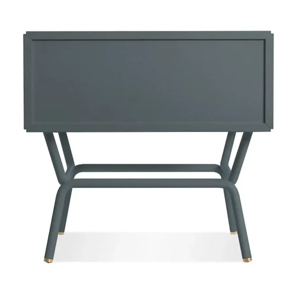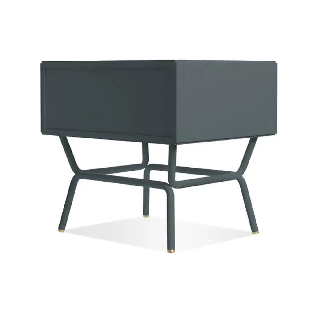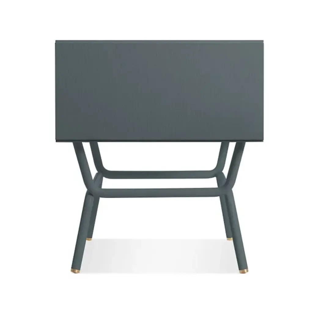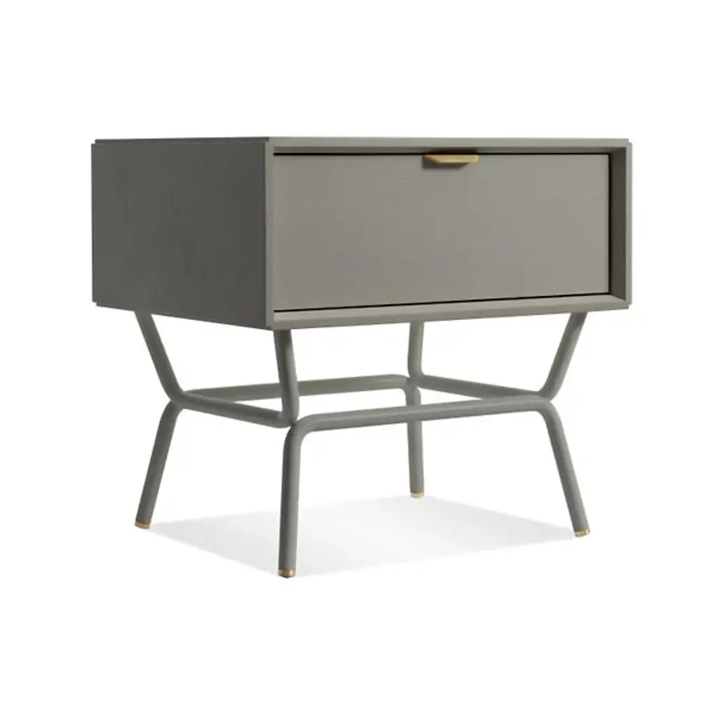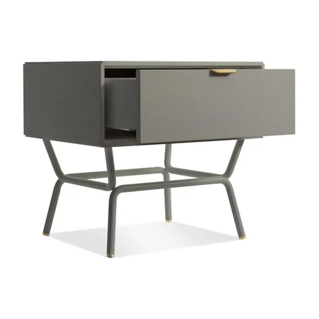 Accented with retro-inspired charm and Precision-crafted for the refined setting. One can’t help but repeat the name of the Dang 1 Drawer Nightstand from Blu Dot once nestled elegantly to the edge of one’s bedframe. The piece gets one to crack a smile as a style-minded modern design. It stands with an attractive figure of tapered steel contours. These airy contours give the boxed structure above a dramatic presentation. The wood veneer structure offers a wide table surface fit for a lamp and reading material. Its drawer opens quietly with an antique brass handle. The drawer offers enough space for a bevy of nighttime essentials.