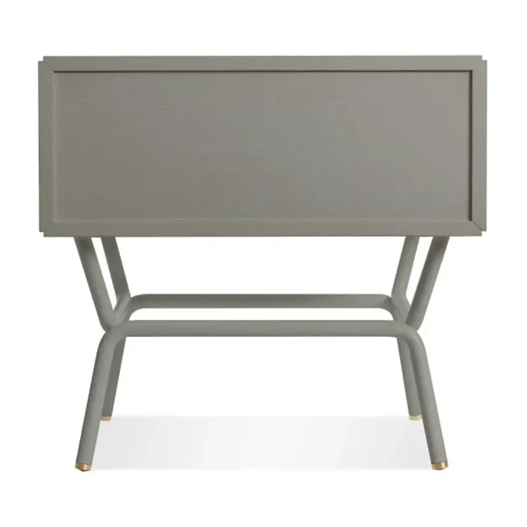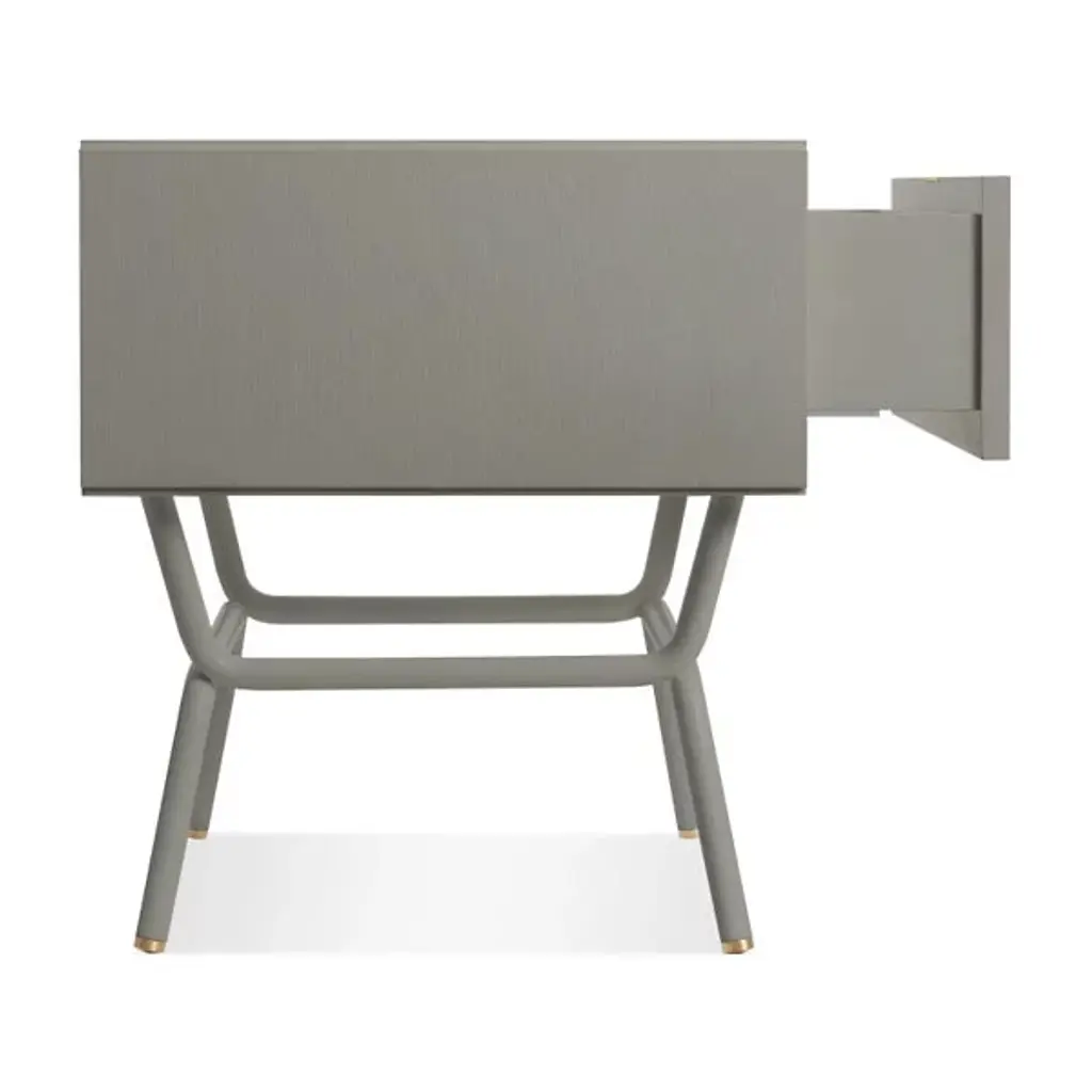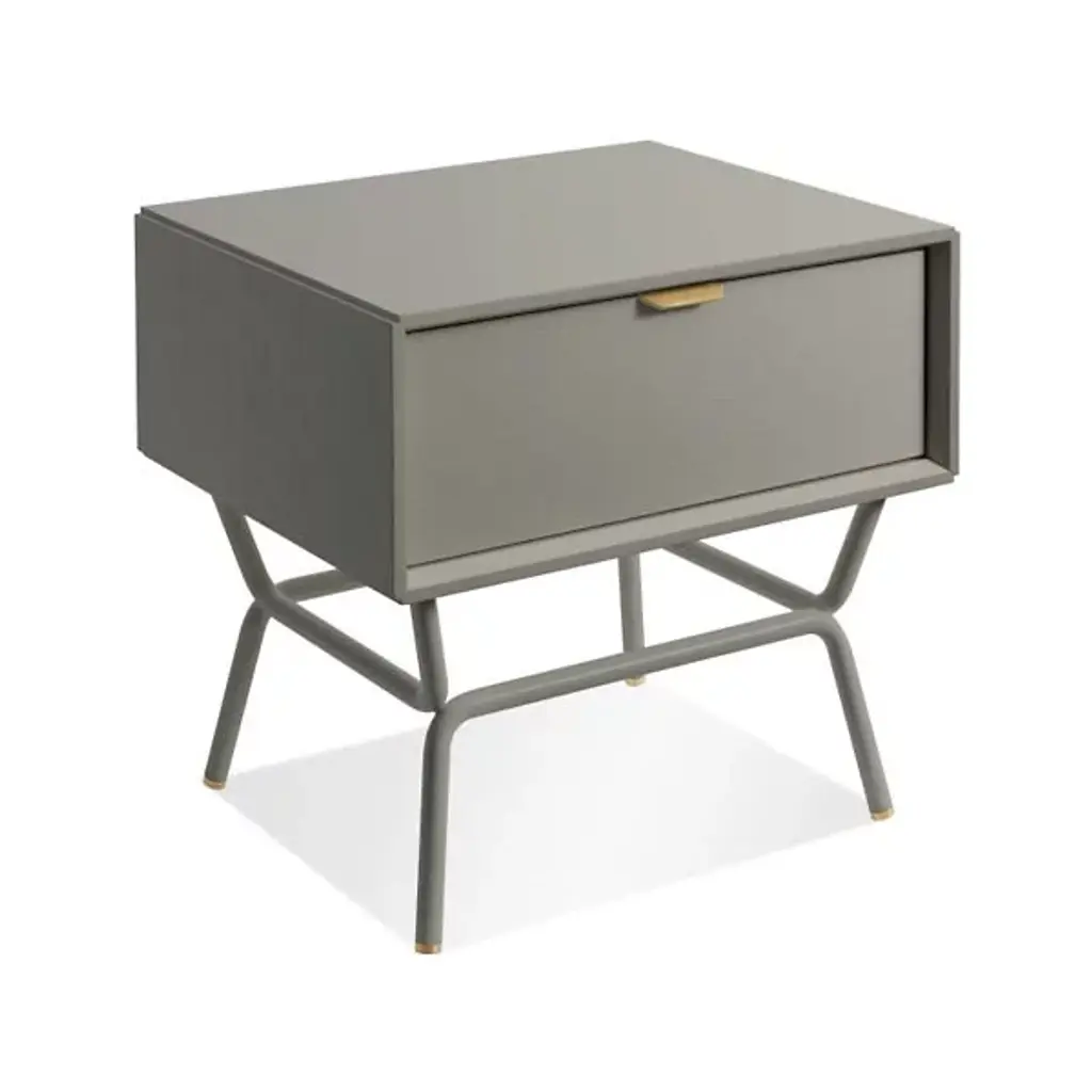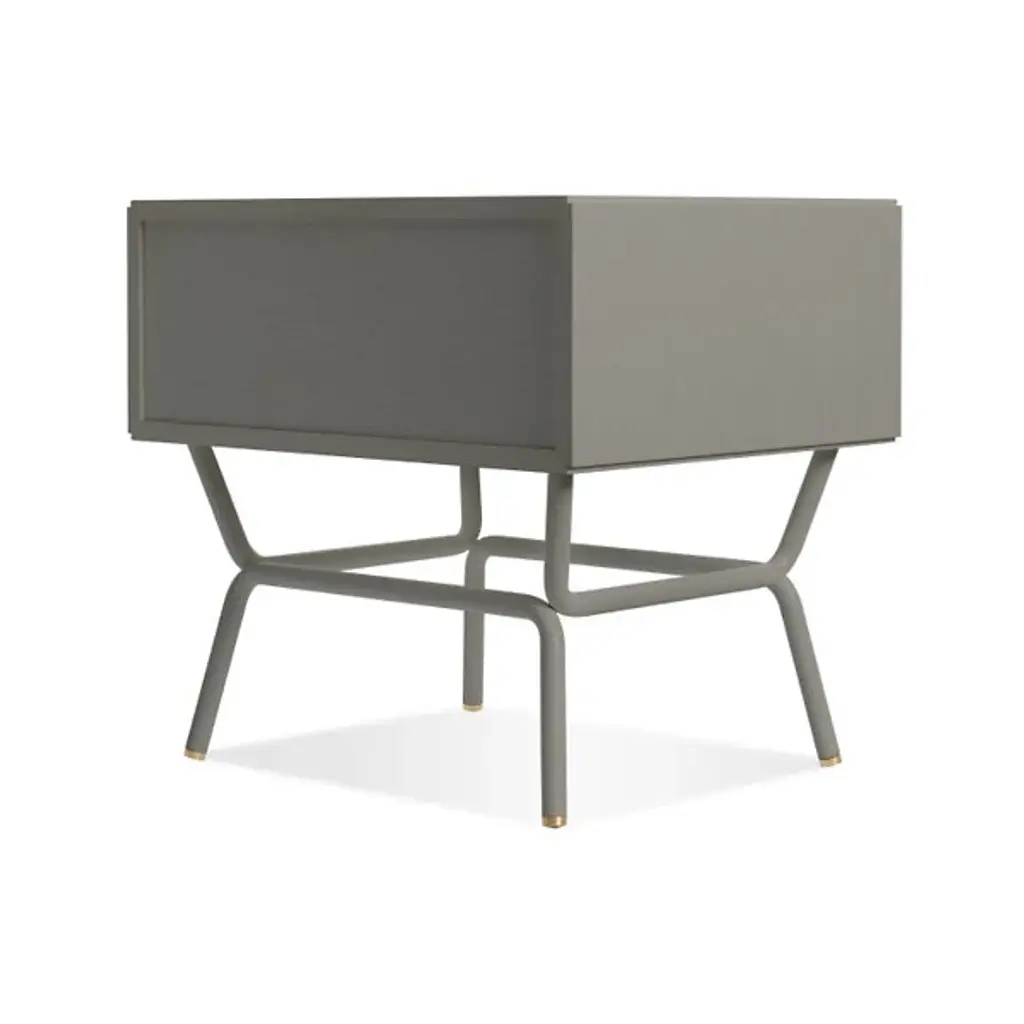 Accented with retro-inspired charm and Precision-crafted for the refined setting. One can’t help but repeat the name of the Dang 1 Drawer Nightstand from Blu Dot once nestled elegantly to the edge of one’s bedframe. The piece gets one to crack a smile as a style-minded modern design. It stands with an attractive figure of tapered steel contours. These airy contours give the boxed structure above a dramatic presentation. The wood veneer structure offers a wide table surface fit for a lamp and reading material. Its drawer opens quietly with an antique brass handle. The drawer offers enough space for a bevy of nighttime essentials.