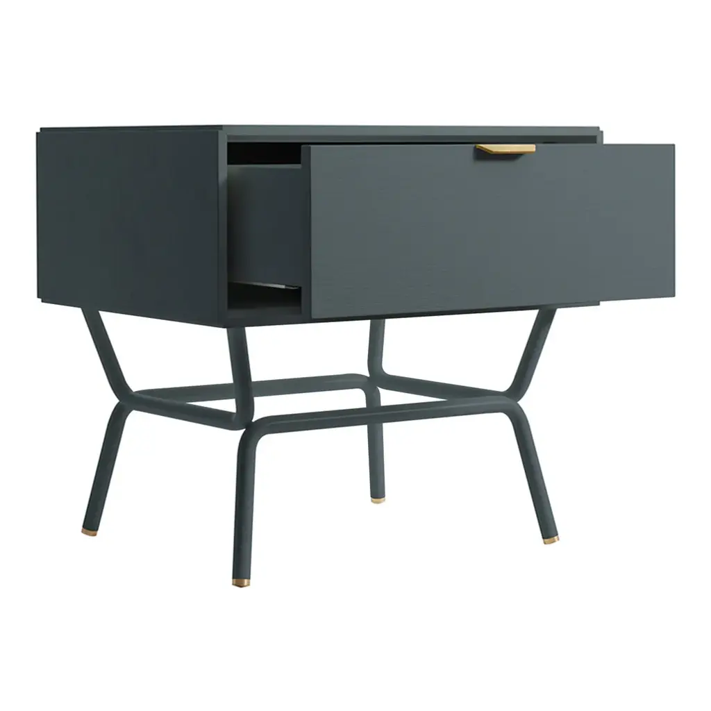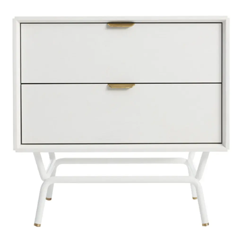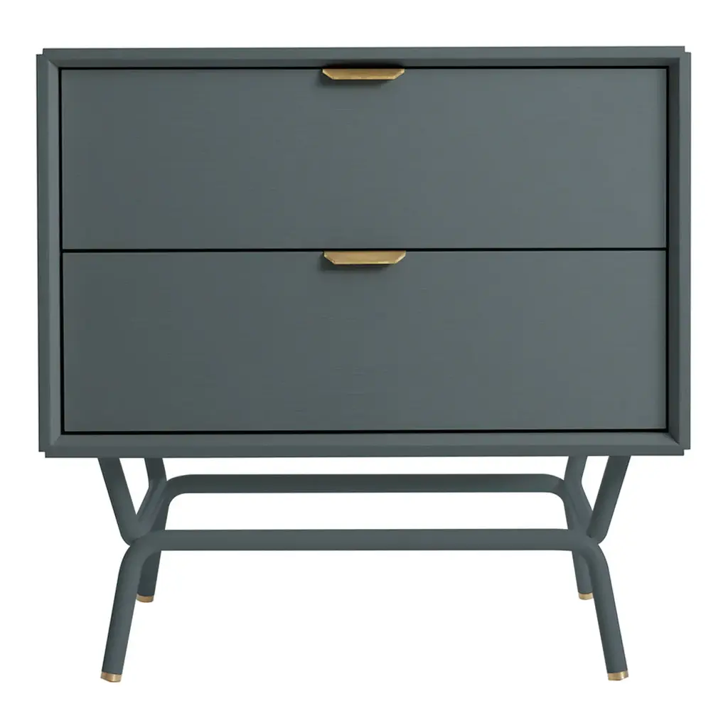 Give simple a lift. A powder-coated steel base props up a refined unassuming silhouette. Antique brass pulls keep it pretty. Soft-close drawers keep it quiet. Available in a bevy of sizes to stylishly store your unmentionables and mentionables. All worth mentioning.