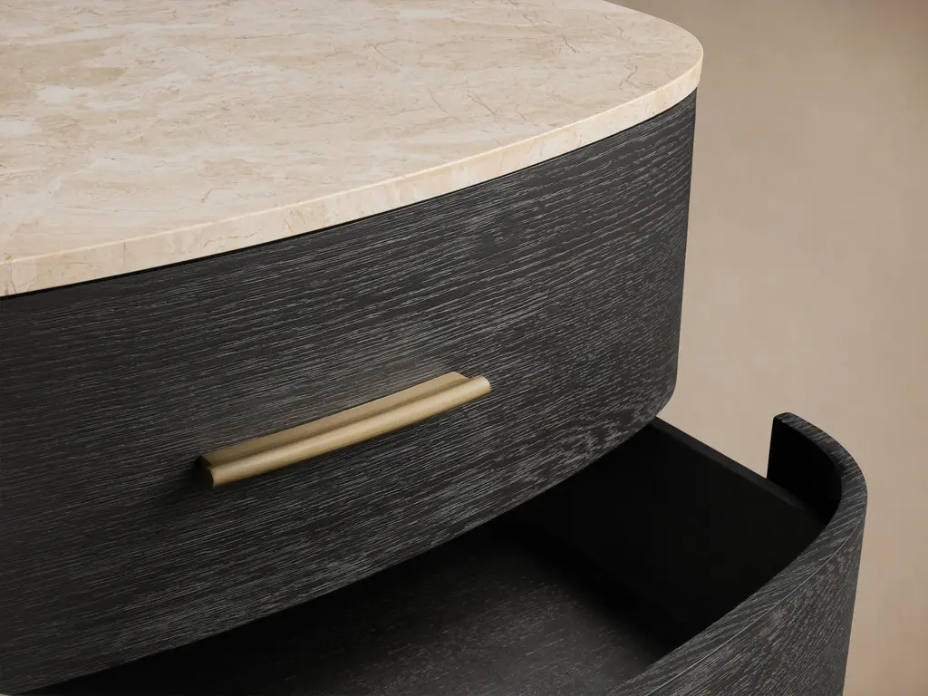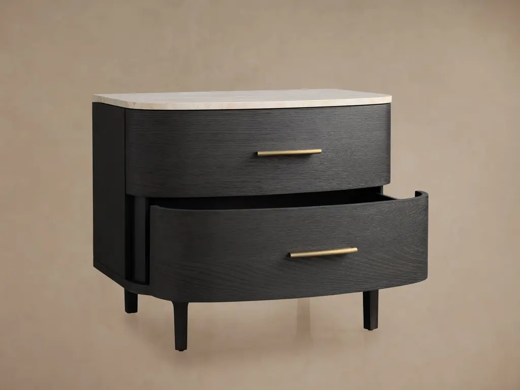 Elevate your bedroom oasis with our Danny Bedroom Collection. Crafted from oak wood with beautiful hand-applied finishes, Danny’s gently curved silhouettes elevate your space with wood or marble tops and contrasting brass pulls.