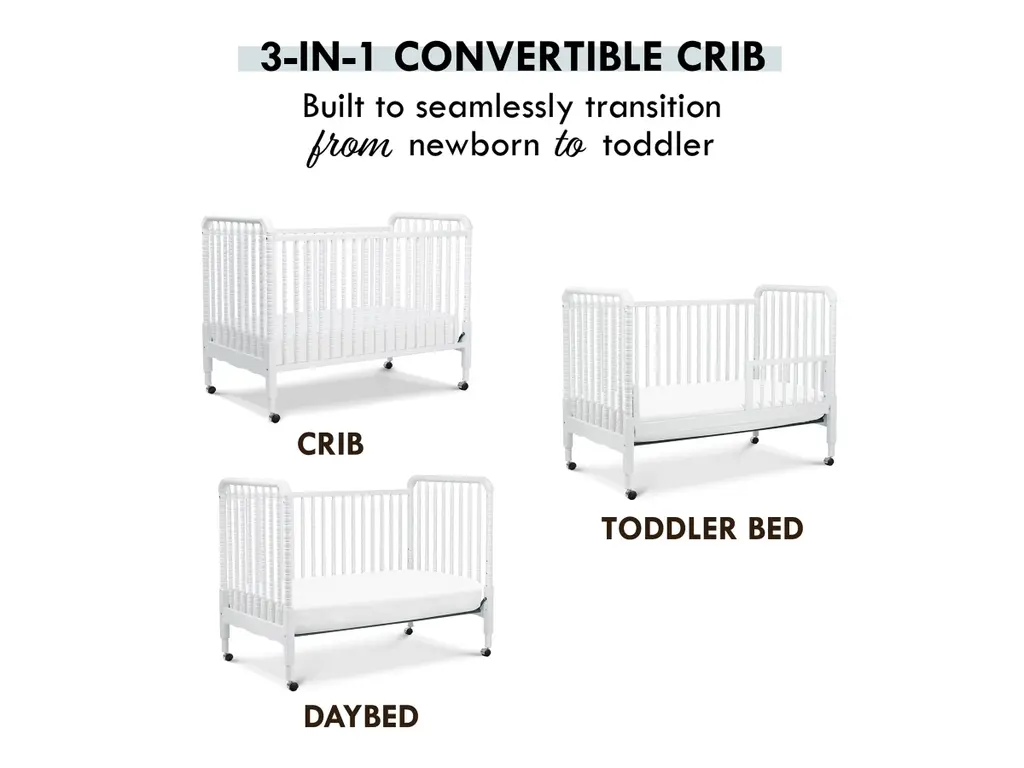 DaVinci’s beloved Jenny Lind 3-in-1 Convertible Crib brings classic, vintage-inspired charm to the nursery. Signature heirloom style and solid wood spindle posts are paired with easy assembly and convertibility for use beyond the nursery years. Crib converts to toddler bed and daybed, with wheels included for mobility. Matching Jenny Lind Changing Table, Dressers and Nightstand to store all of baby’s sweet treasures complete the versatile collection.