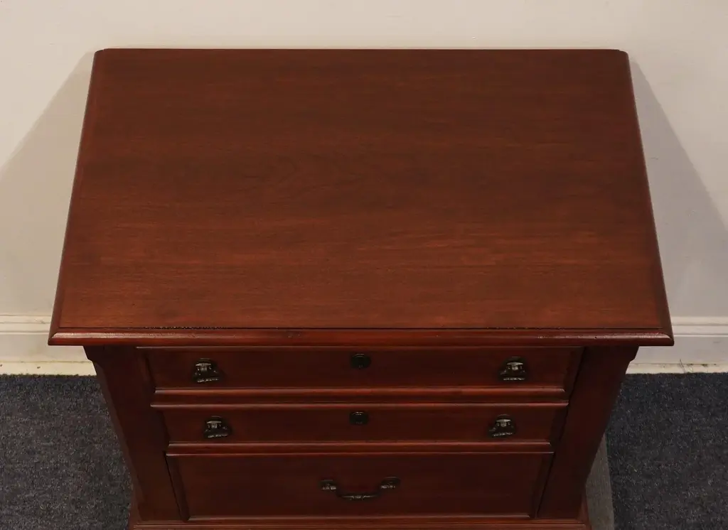 DAVIS INTERNATIONAL Cherry Contemporary Traditional 27" Two Drawer Nightstand B3122-402 27.5" High 27" Wide 17" Deep We specialize in high end used furniture that we consider to be at least an 8 on a scale of 1 to 10 regarding condition, unless otherwise noted.