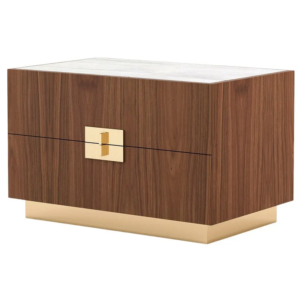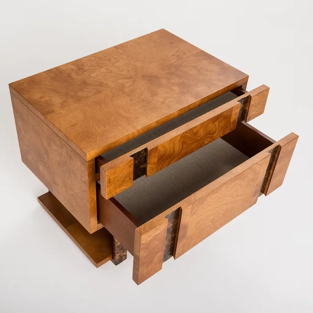Diadema Bedside Table In Myrtle Briarwood Veneer Stained In Walnut