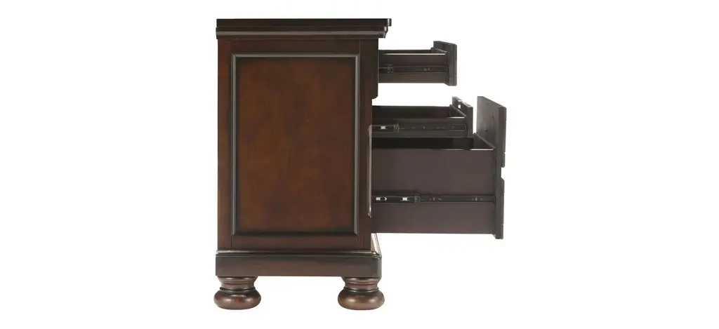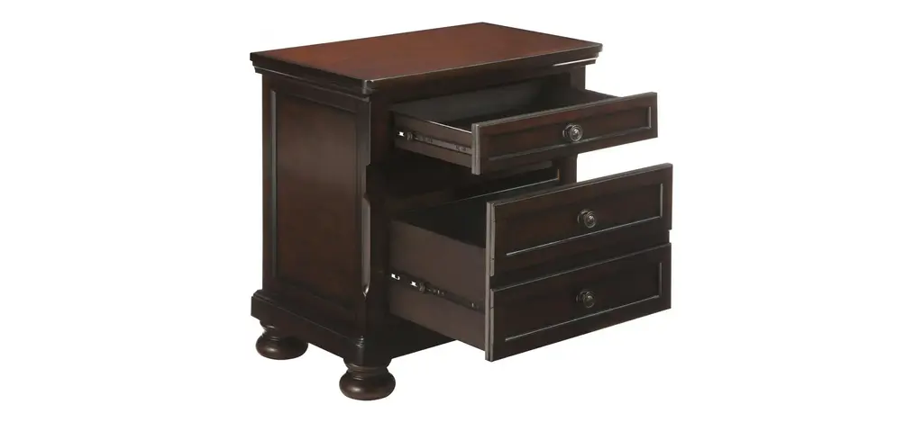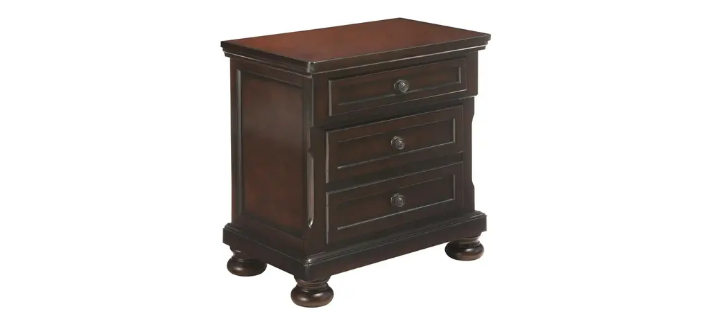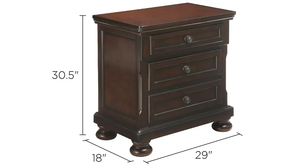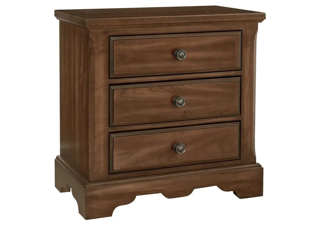 Creating a cozy, restful retreat is easy with this Donegan nightstand. Along with its rich, brown cherry finish, this nightstand's elegant details, like antiqued-bronze hardware and bun feet, combine to deliver a timeless quality and a beautiful appearance. This piece is practical too, with ample storage and a hidden drawer that's ideal for storing your precious items away from view.