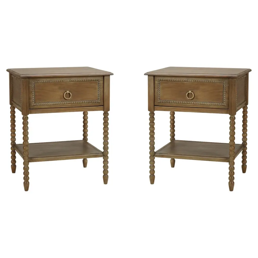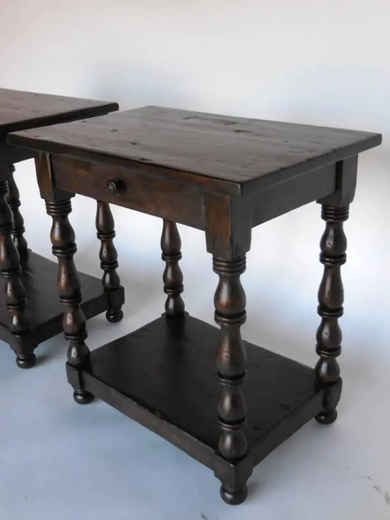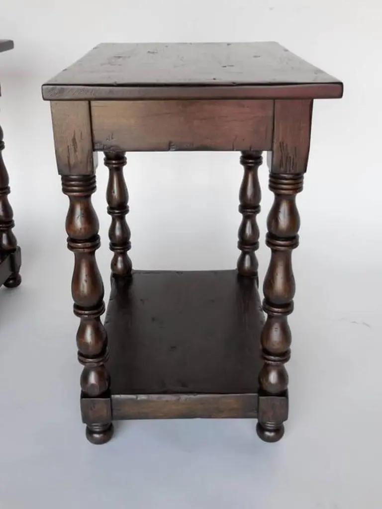 Dos Gallos Custom Side Tables/nightstands With Turned Legs, Drawer And Shelv