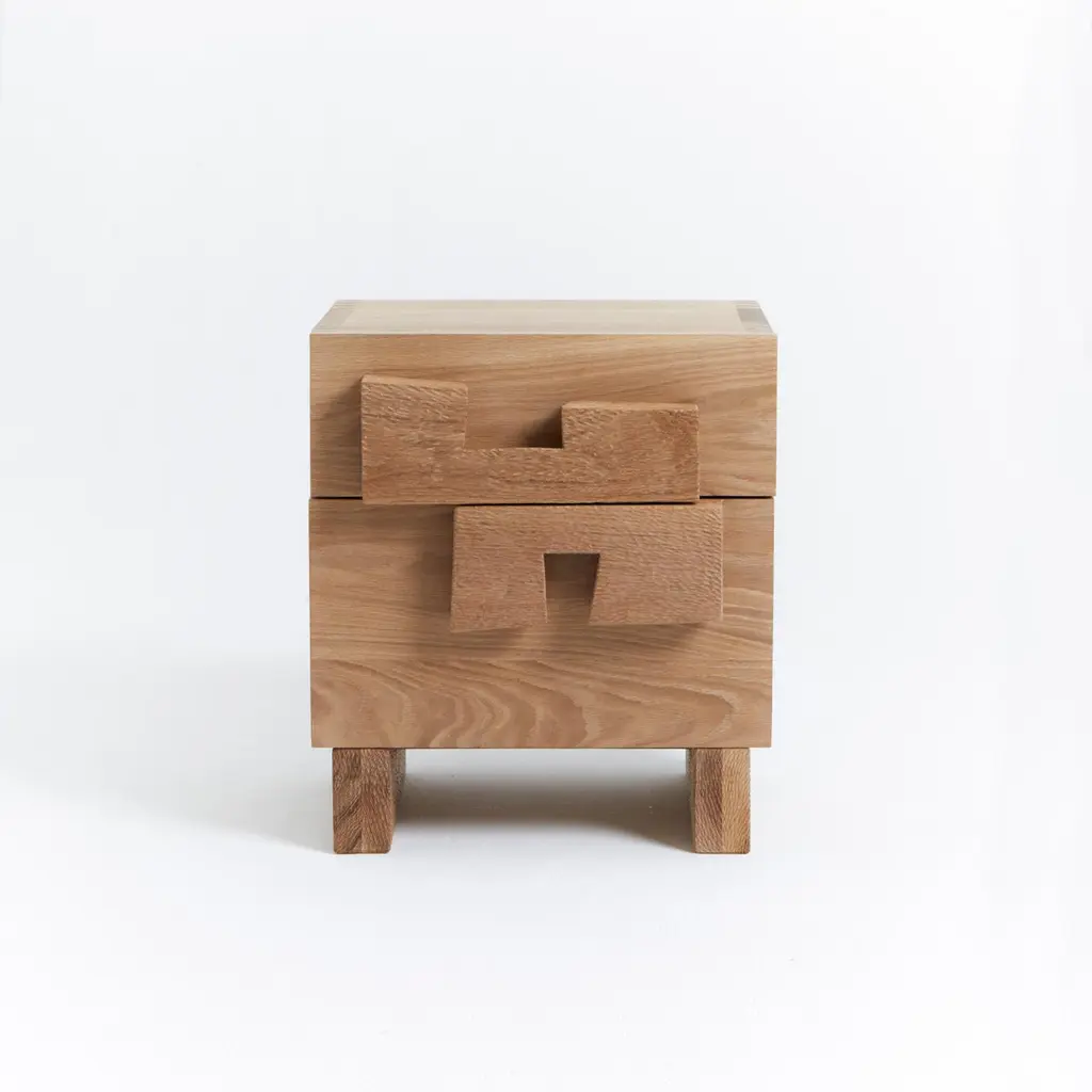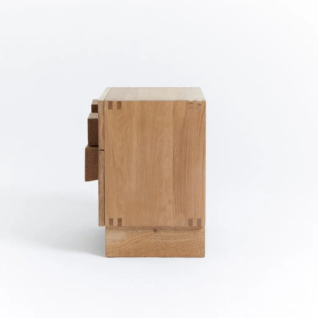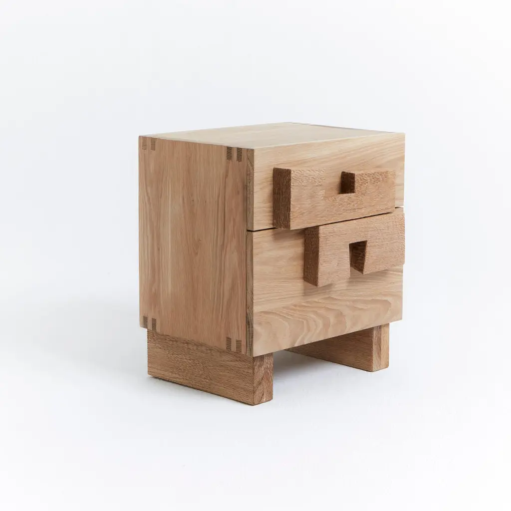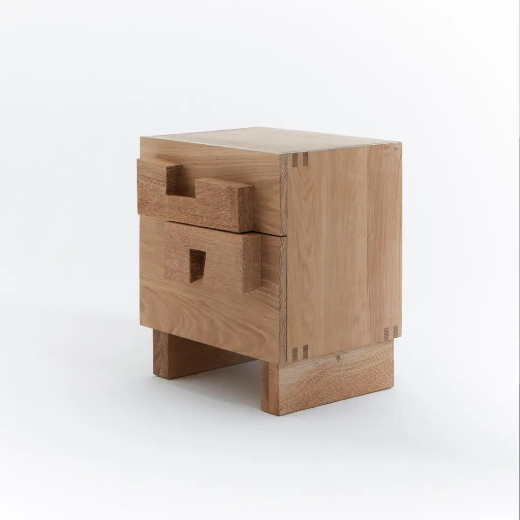 Douro Bedside TableDesigned by Project 213A in 2023Handmade by skilled artisans in solid oak. The bedside table features two drawers with handles and legs decorated with a hand carved texture. Bespoke dimensions upon request.Production lead time: 6-8 weeks