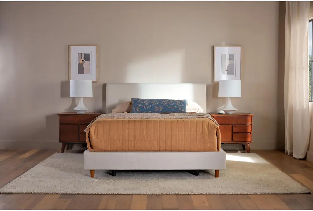 The Draper Brown Wood 4-Drawer Nightstand with USB is a perfect addition to your bedroom, blending seamlessly with mid-century modern style. Constructed with acacia veneers and solid acacia, this walnut-colored piece offers both durability and timeless appeal. It features four spacious drawers and a convenient USB port to keep your devices charged overnight.