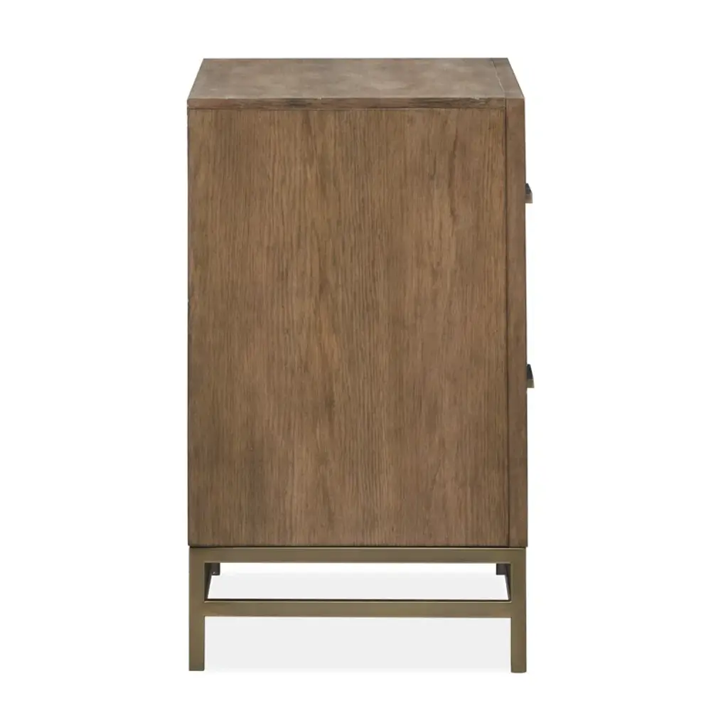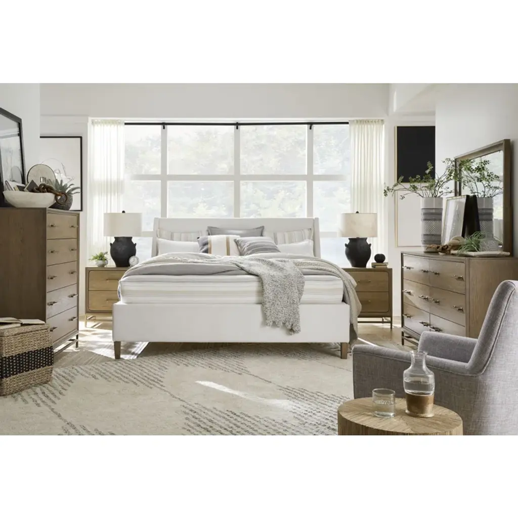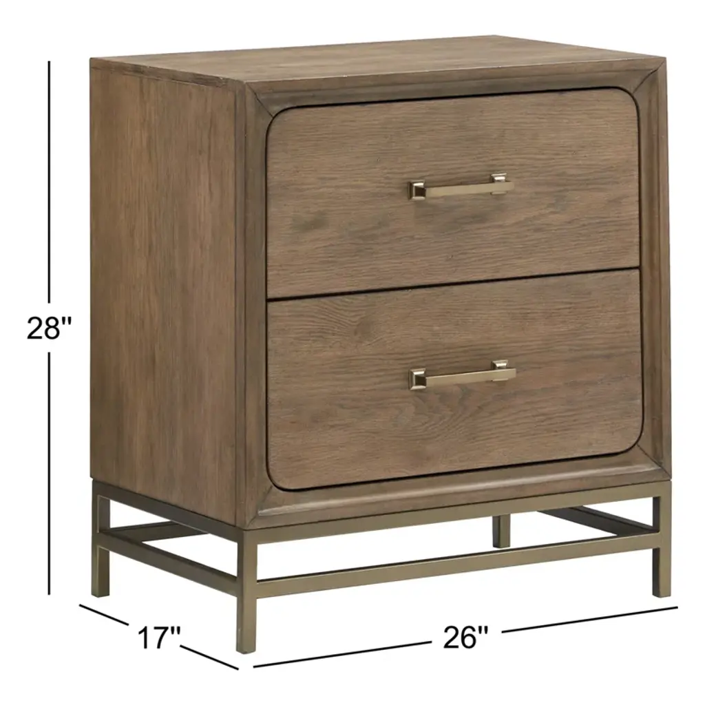 With its sophisticated and squared silhouettes and modern lines Osa is nothing short of iconic. A Osa bed makes a bold design statement in any bedroom while creating an undeniable focal point. Dress it up or down and traditional or modern—its beauty has no limits. The coordinating case goods in this group convey Osa’s streamlined personality while design details such as open metal bases tie all the pieces together. Alluring finishes of Belgian wheat and coffee beans highlight the group’s random Cathedral/ Quartered knotty white oak veneers and hardwood solids. Burnished brass hardware adds a finishing touch to this expressive bedroom collection.