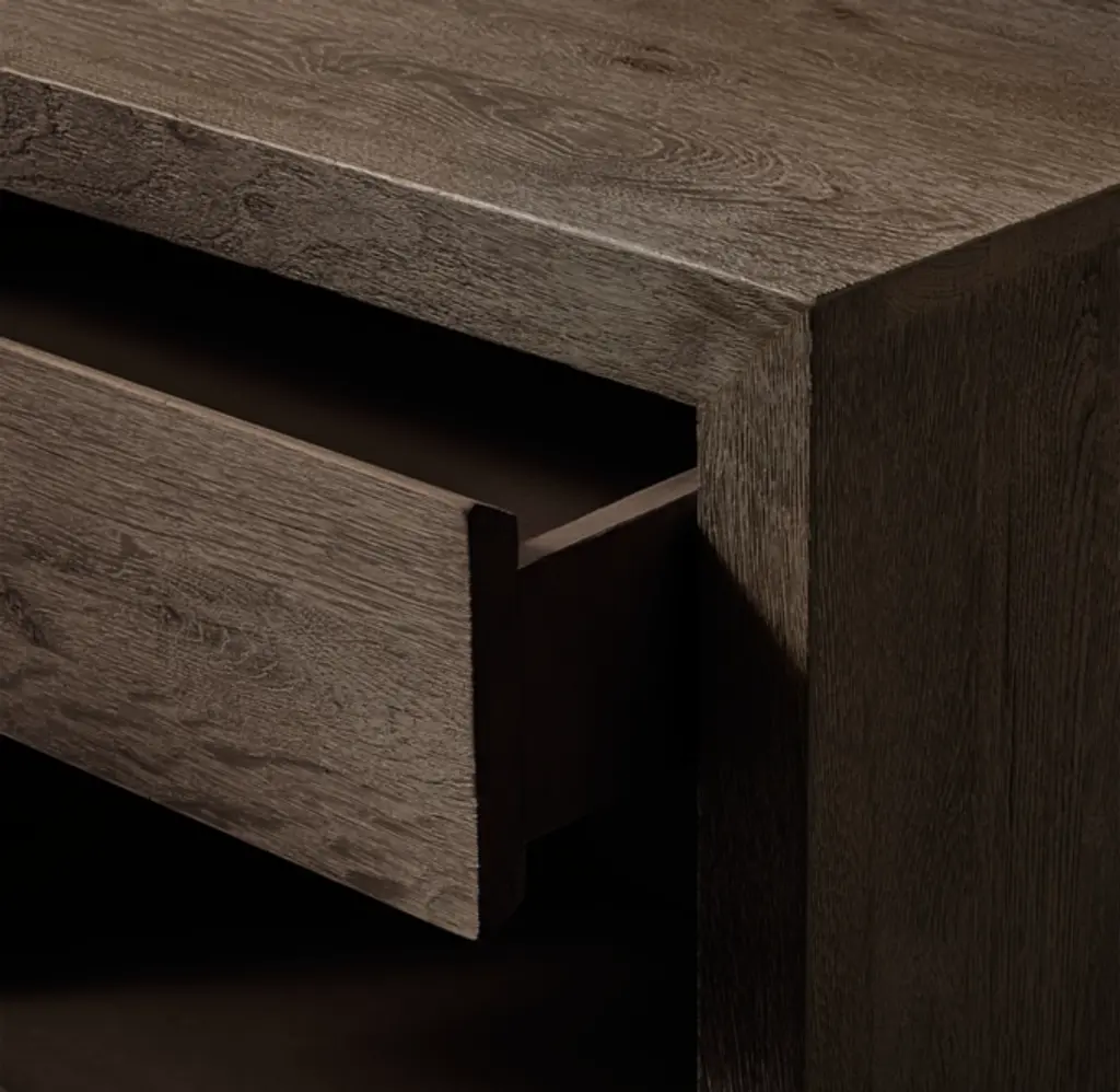 Reclaimed oak timbers from decades-old buildings in Europe lend richness to this simple, linear collection from designer and maker Nils Verhoeven. Each piece is handcrafted with a richly textured, wire-brushed finish that celebrates the wood's rustic character, bearing the occasional knot, nick or crack. No two pieces are exactly the same. SHOP THE ENTIRE COLLECTION