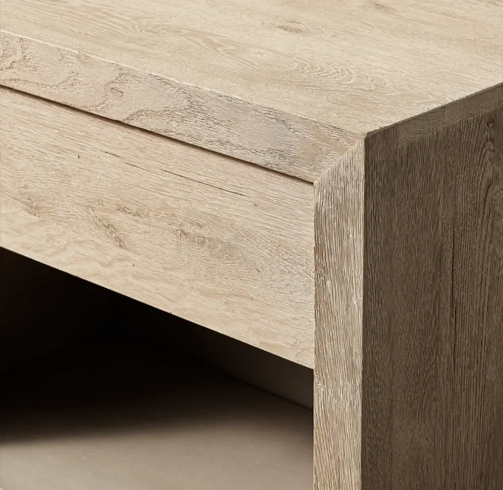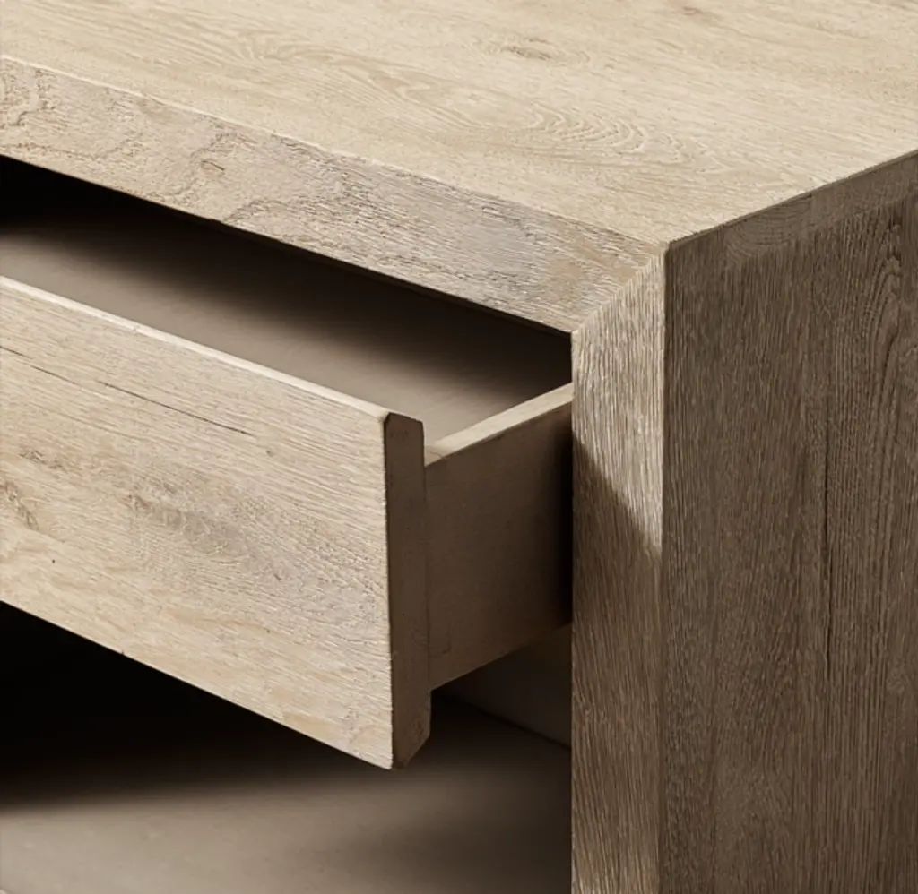 Reclaimed oak timbers from decades-old buildings in Europe lend richness to this simple, linear collection from designer and maker Nils Verhoeven. Each piece is handcrafted with a richly textured, wire-brushed finish that celebrates the wood's rustic character, bearing the occasional knot, nick or crack. No two pieces are exactly the same. SHOP THE ENTIRE COLLECTION